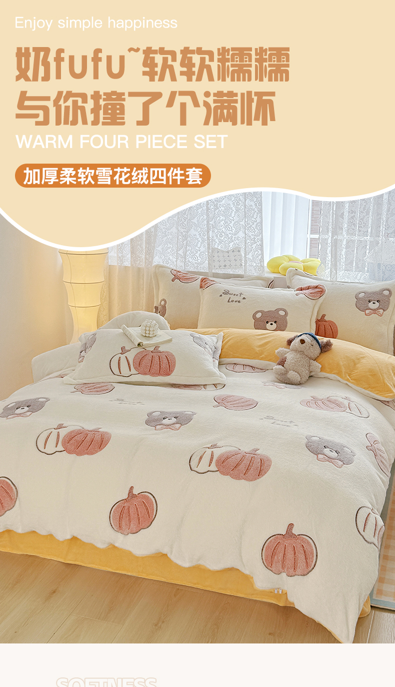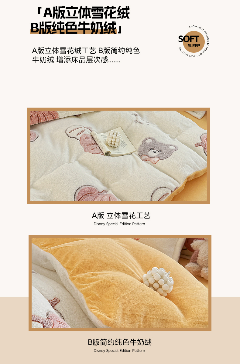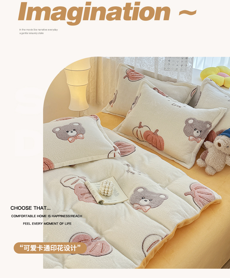 (总)曼町家居 2025新款雪花绒四件套,爱丽丝,恐龙乐园,蓝色大耳狗,牛油果,绅士派对,时空序曲,甜蜜小熊,甜心草莓,熊猫宝贝
