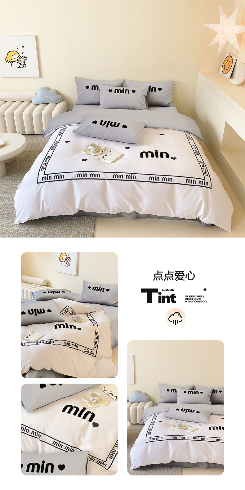 (总)麦田家纺 2025新款A类云感木棉皱皱双层纱印花四件套,春意浓,繁花,花颜,简意,开心小熊,腊肠犬,浪漫花语,免挽星辰,甜心格,小蓝町,樱桃格,紫韵