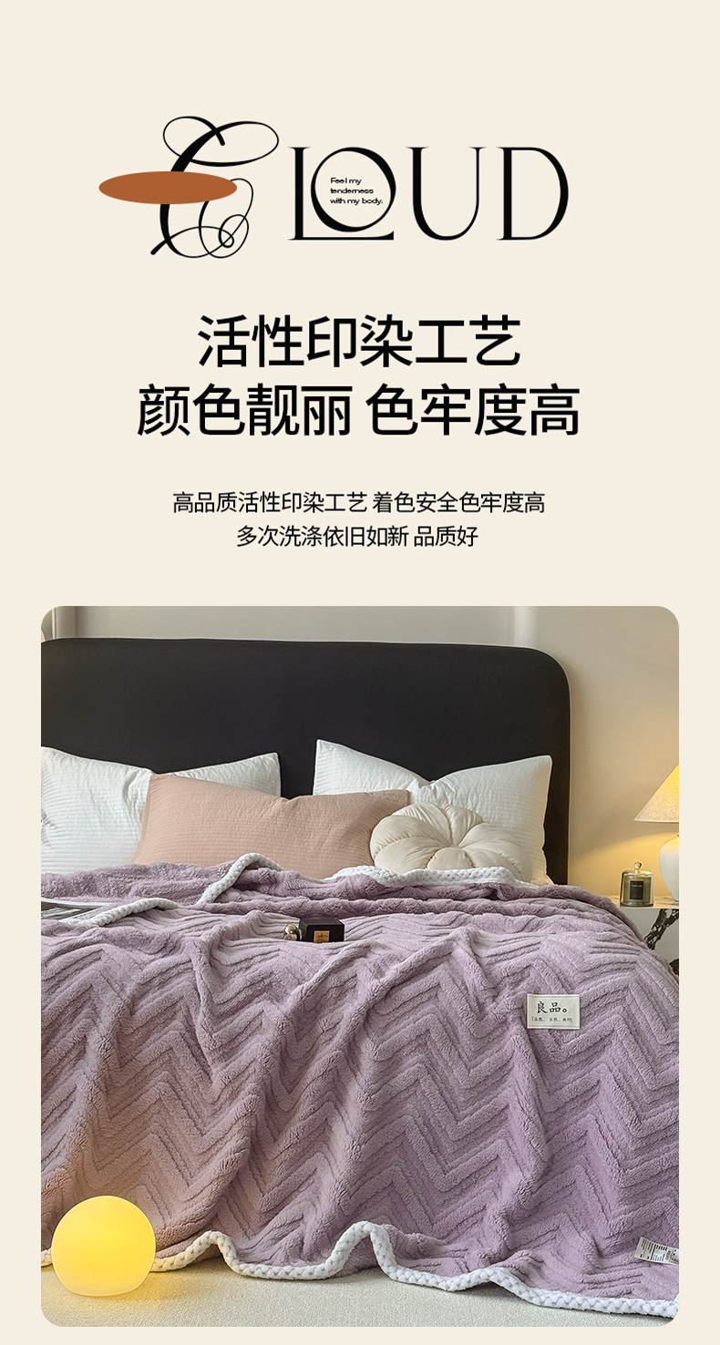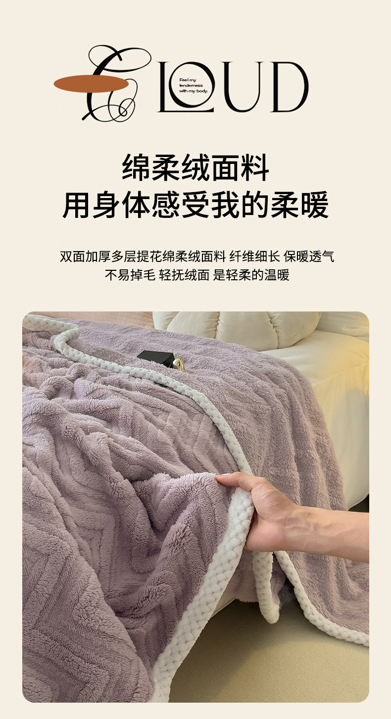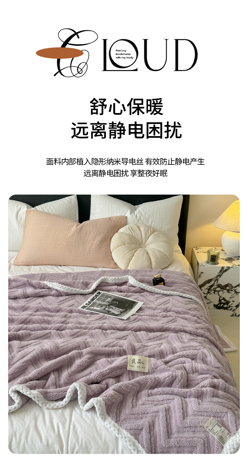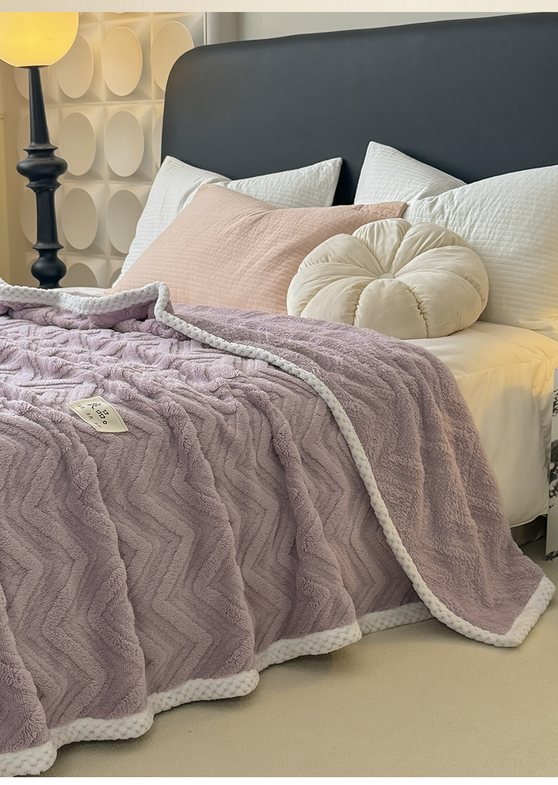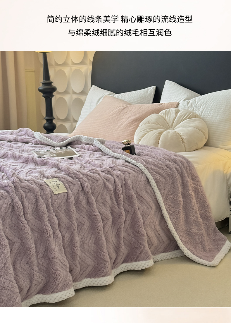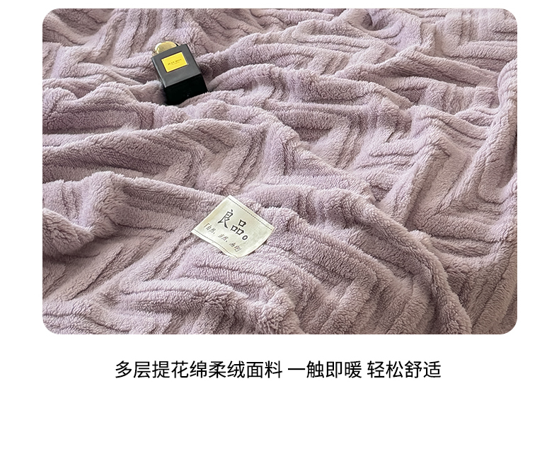 商品名称:穆琪2025新款轻奢盖毯高克重多层提花绵柔绒保暖毛毯绵密亲肤沙发毯休闲小毯子 水晶紫