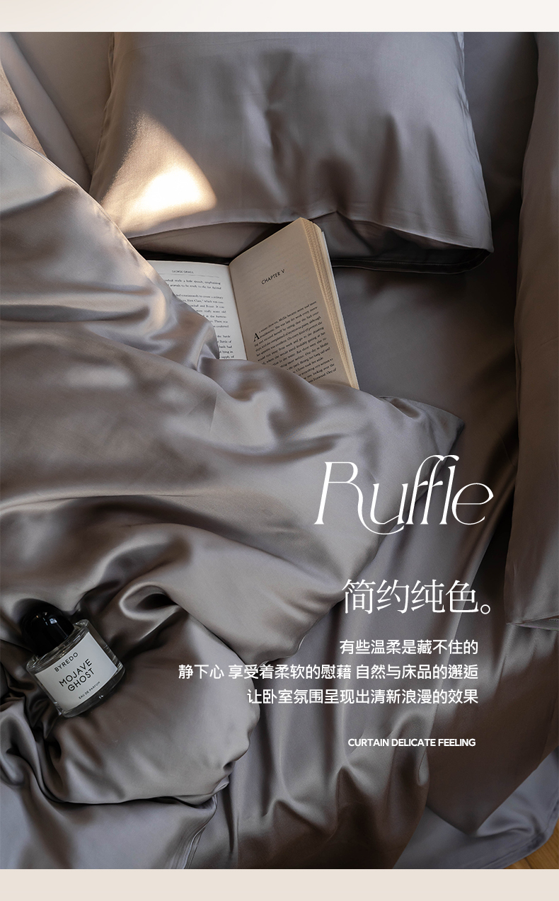 麦田家纺 2025新款A类60S纯色兰精天丝四件套 岩石灰