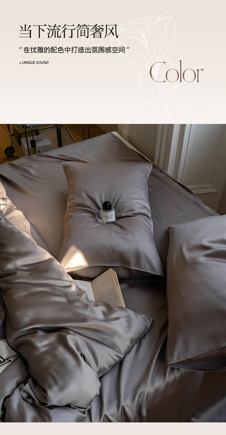 商品名称:麦田家纺 2025新款A类60S纯色兰精天丝四件套 岩石灰