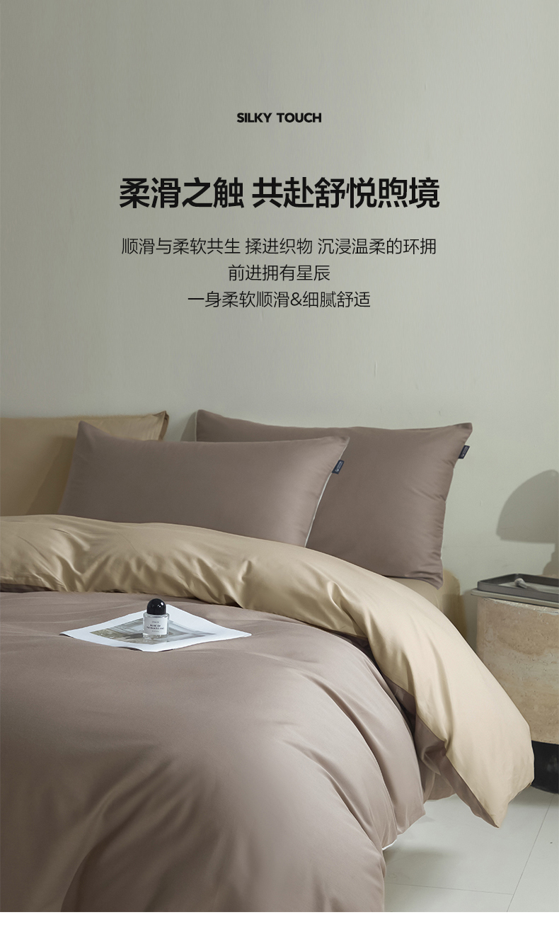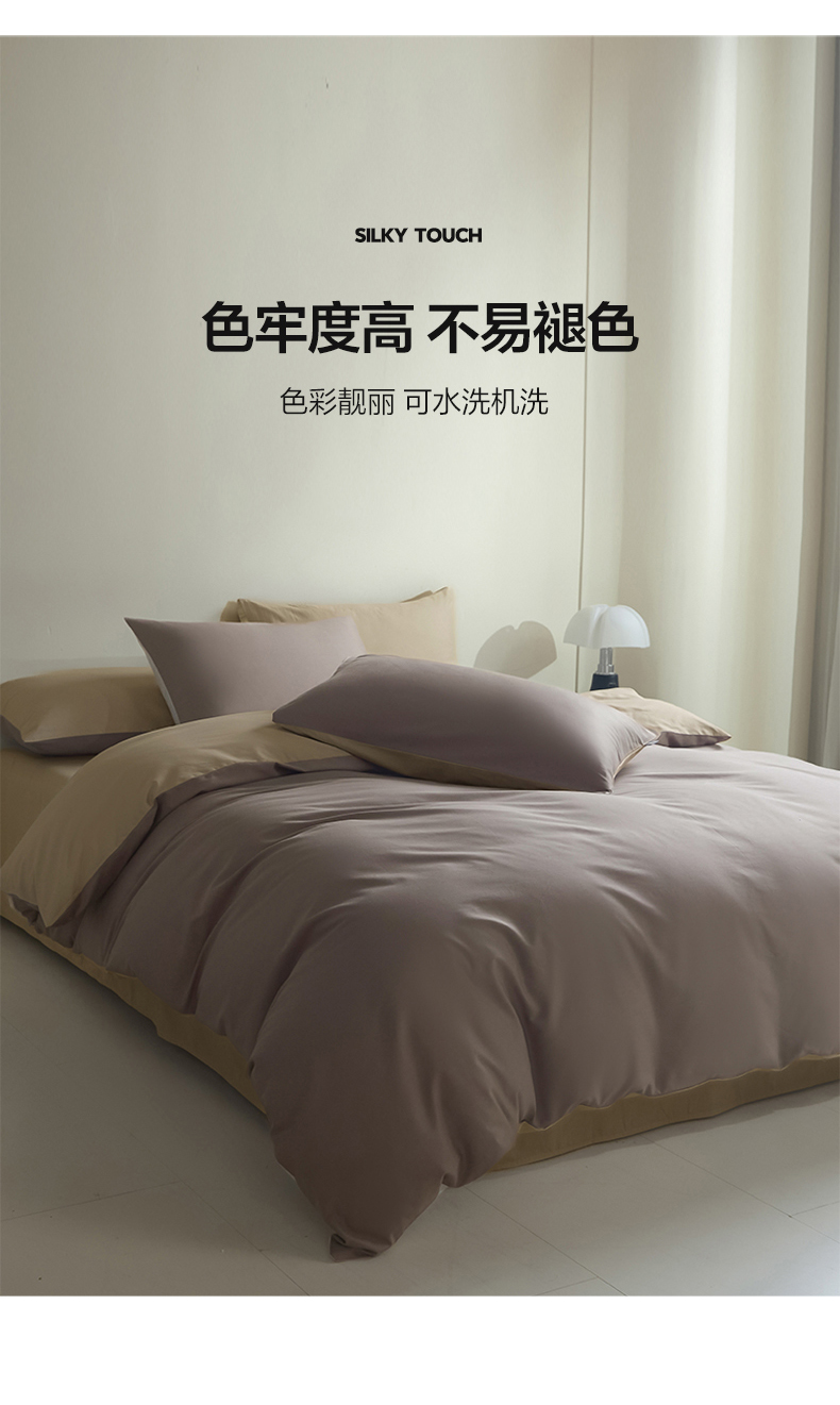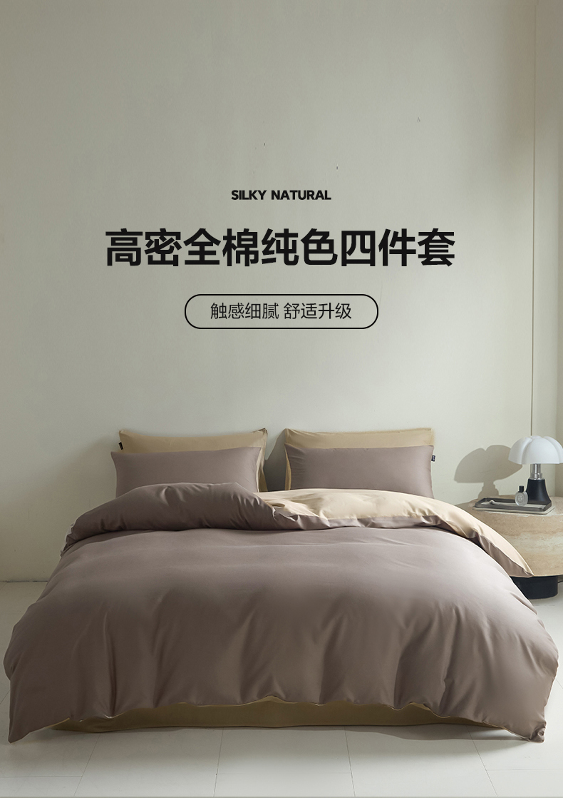 商品名称:麦田家纺 2025新款A类全棉13372纯色四件套 香槟棕深咖