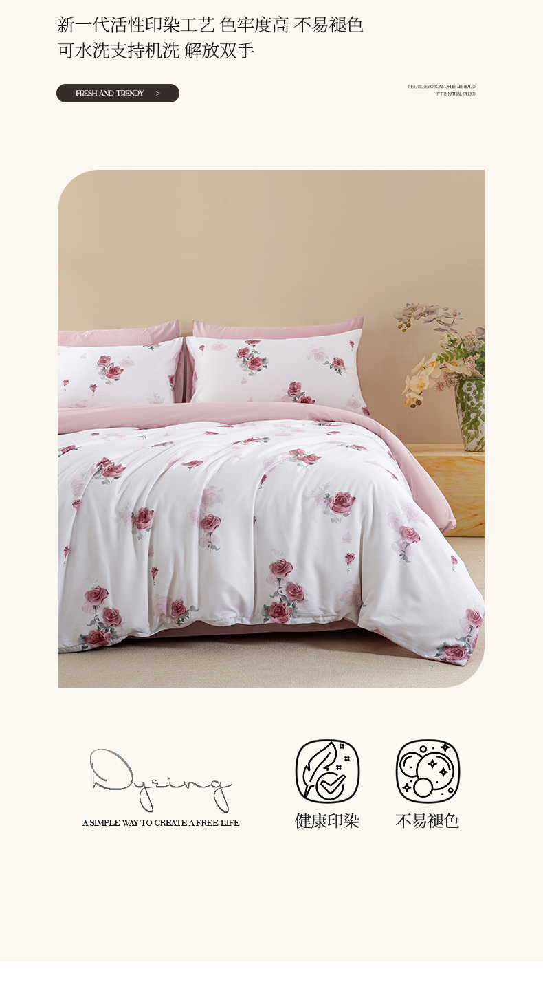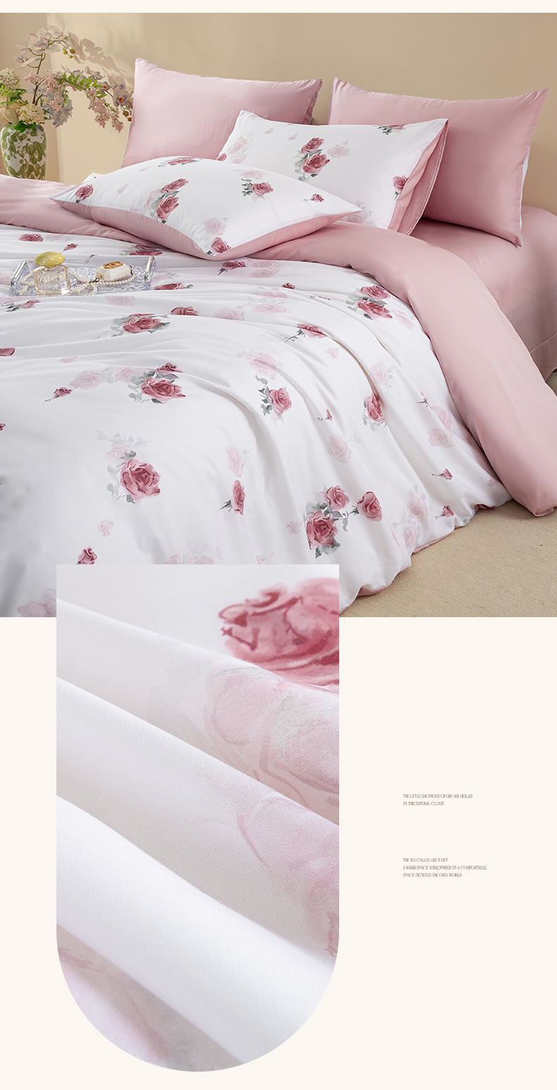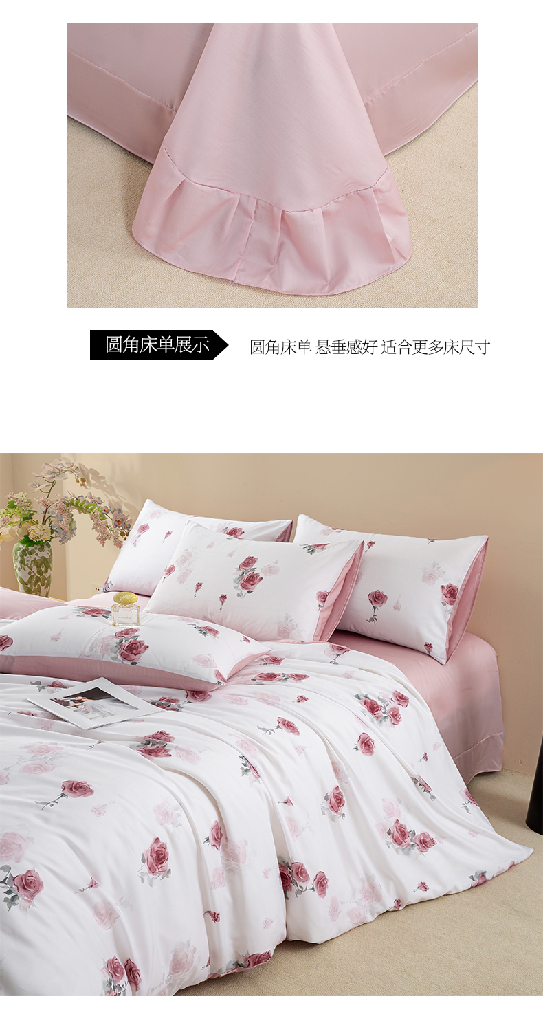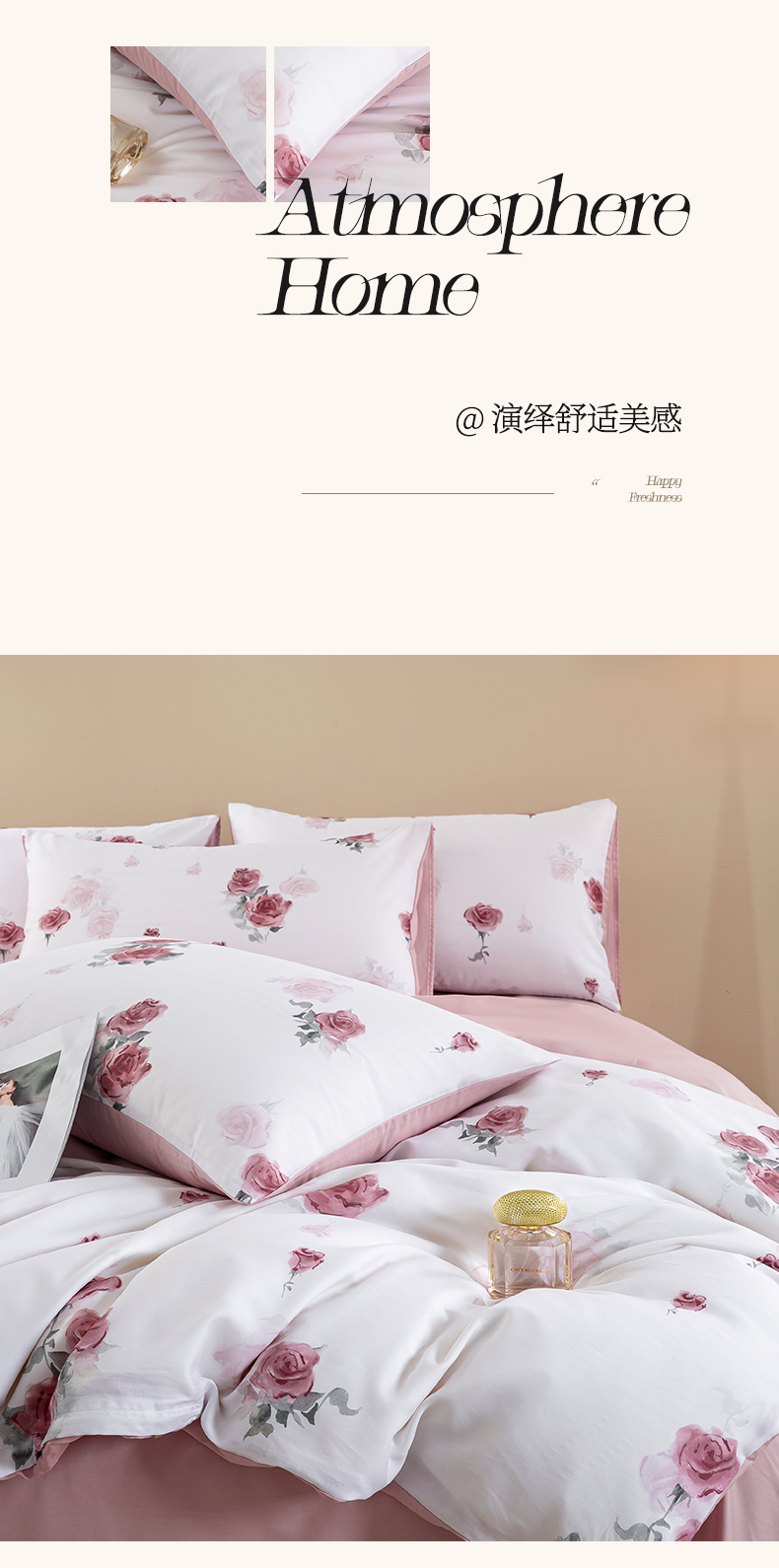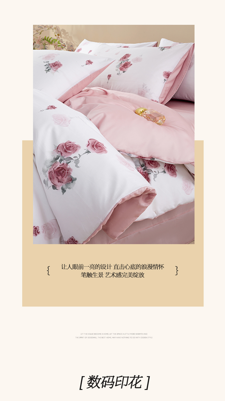 商品名称:麦田家纺 2025新款50S莱赛尔天丝印花四件套 玫瑰雅韵