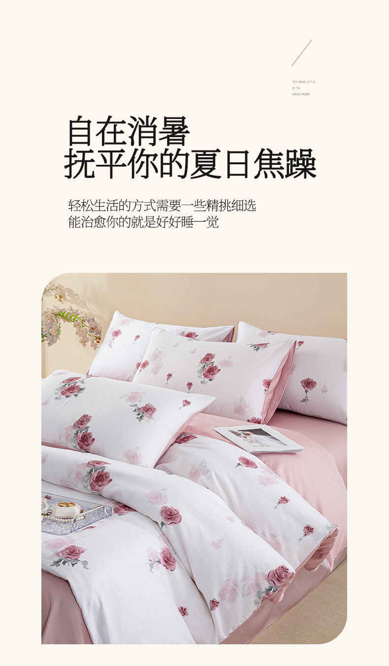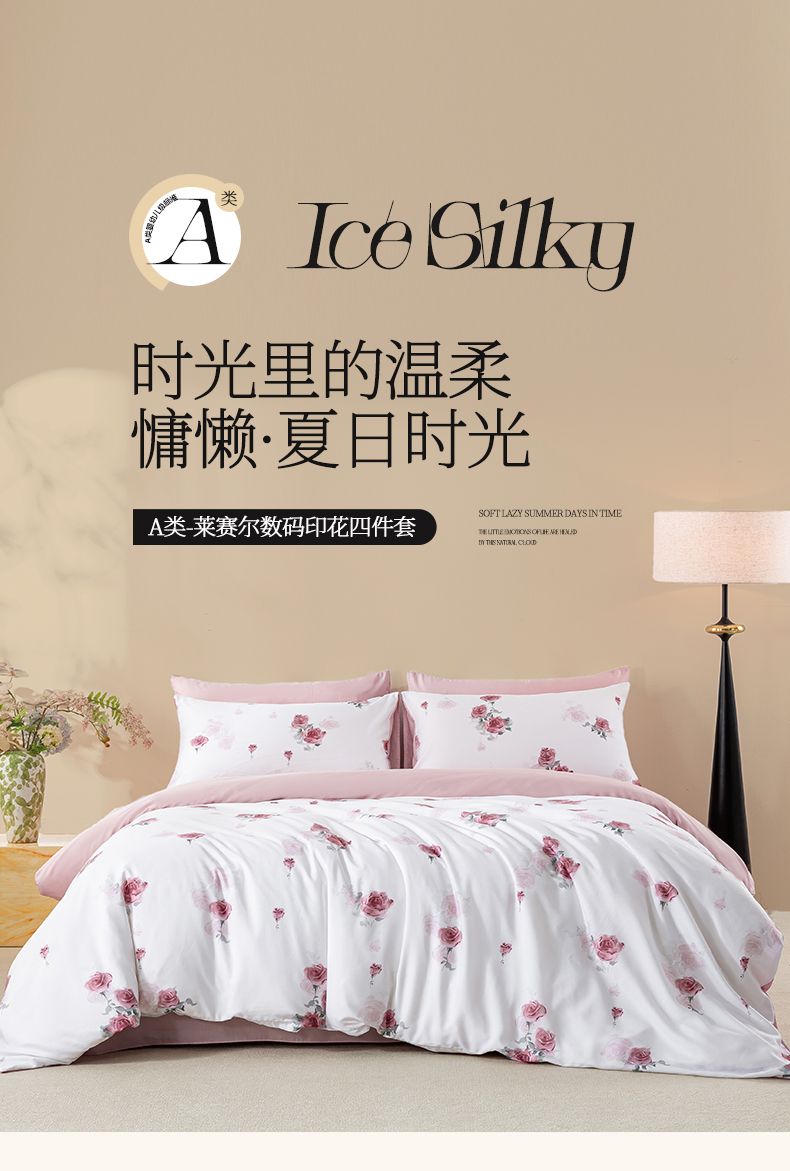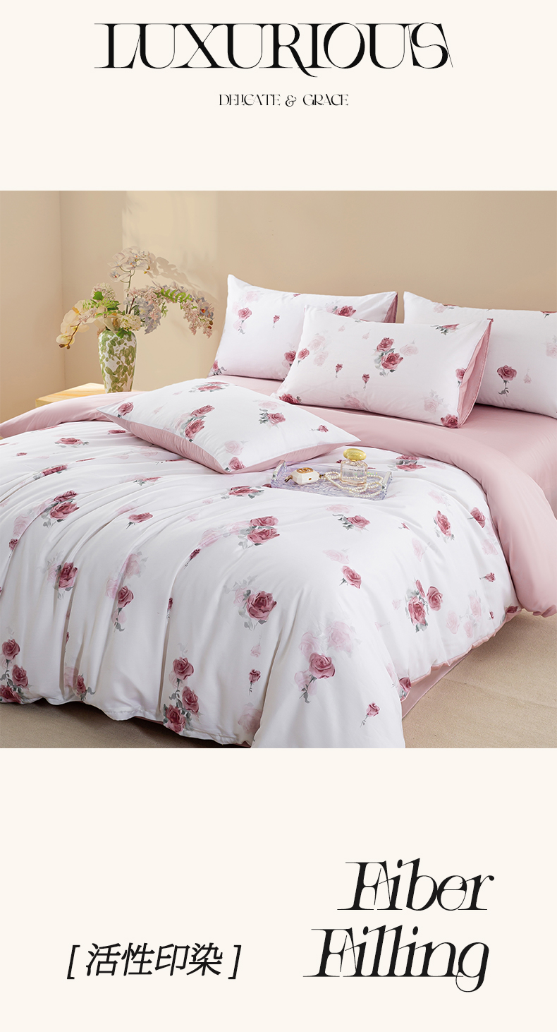 麦田家纺 2025新款50S莱赛尔天丝印花四件套 玫瑰雅韵