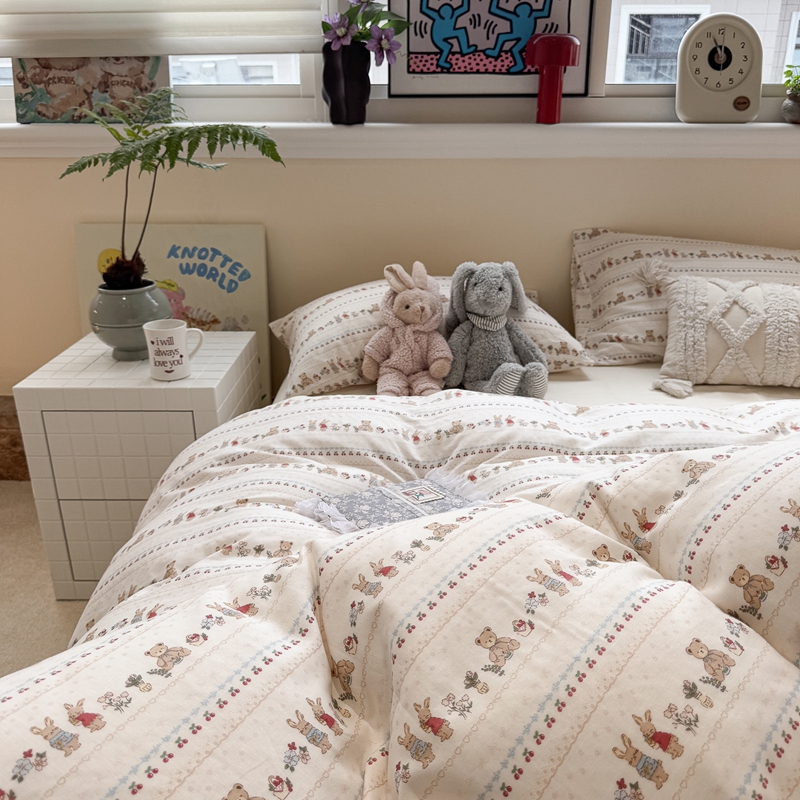 当前位置: 91家纺网 > 商品网购 > 床品套件 > 四件套 > 双层纱四件套 > 慕尚家纺 2025新款全棉纯棉母婴双层纱四件套 小熊和兔子