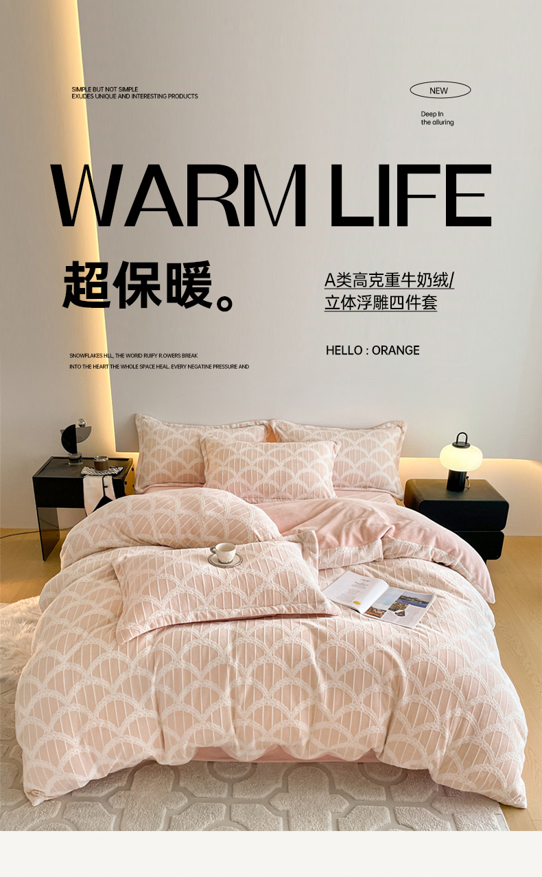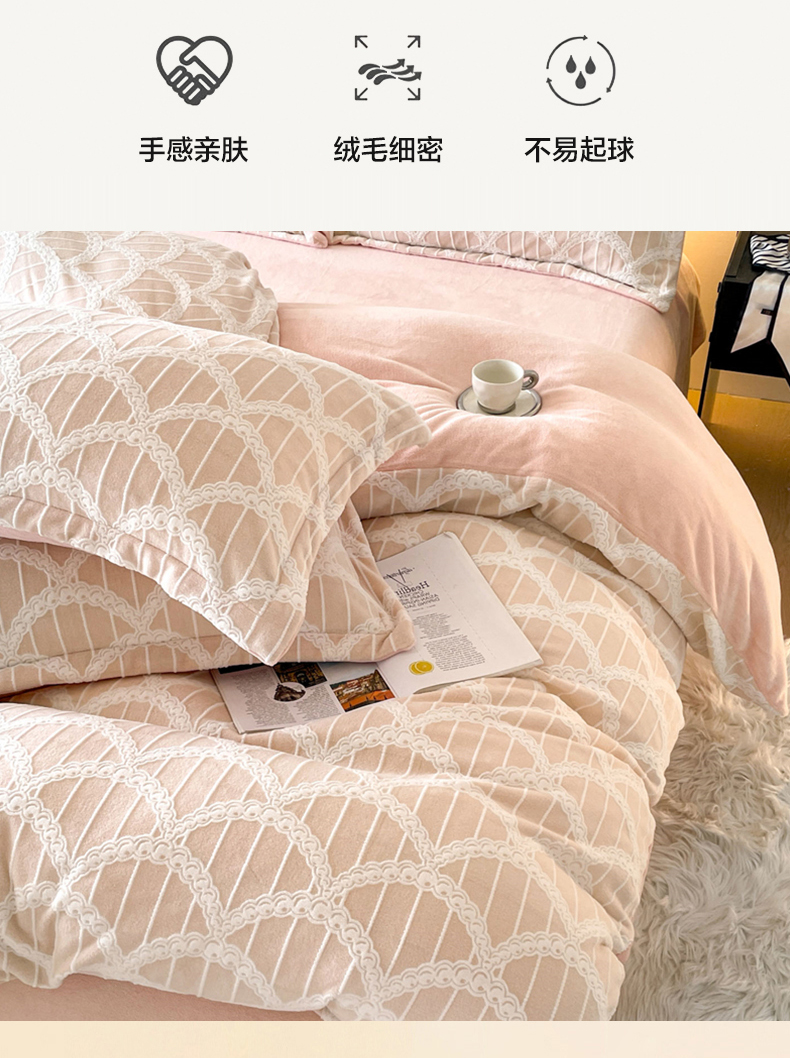 (总)玉相逢 2025秋冬新款A类高克重牛奶绒立体亲肤绒浮雕雕花绒四件套,繁花-粉,艾瑞-粉,艾瑞-紫,斑马暖咖,繁花-浅绿,方格蝴蝶,花季-粉,画意枝头,橘暖,心中之城,云木-蓝,仲夏晨歌