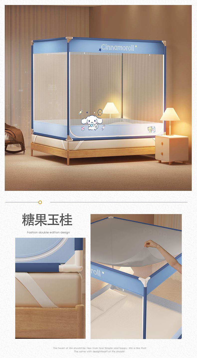 (总)佳梦家纺 2025新款三丽鸥坐床蚊帐,库洛米灰,库洛米紫,奶茶玉桂-灰,糖果玉桂,小鸟玉桂