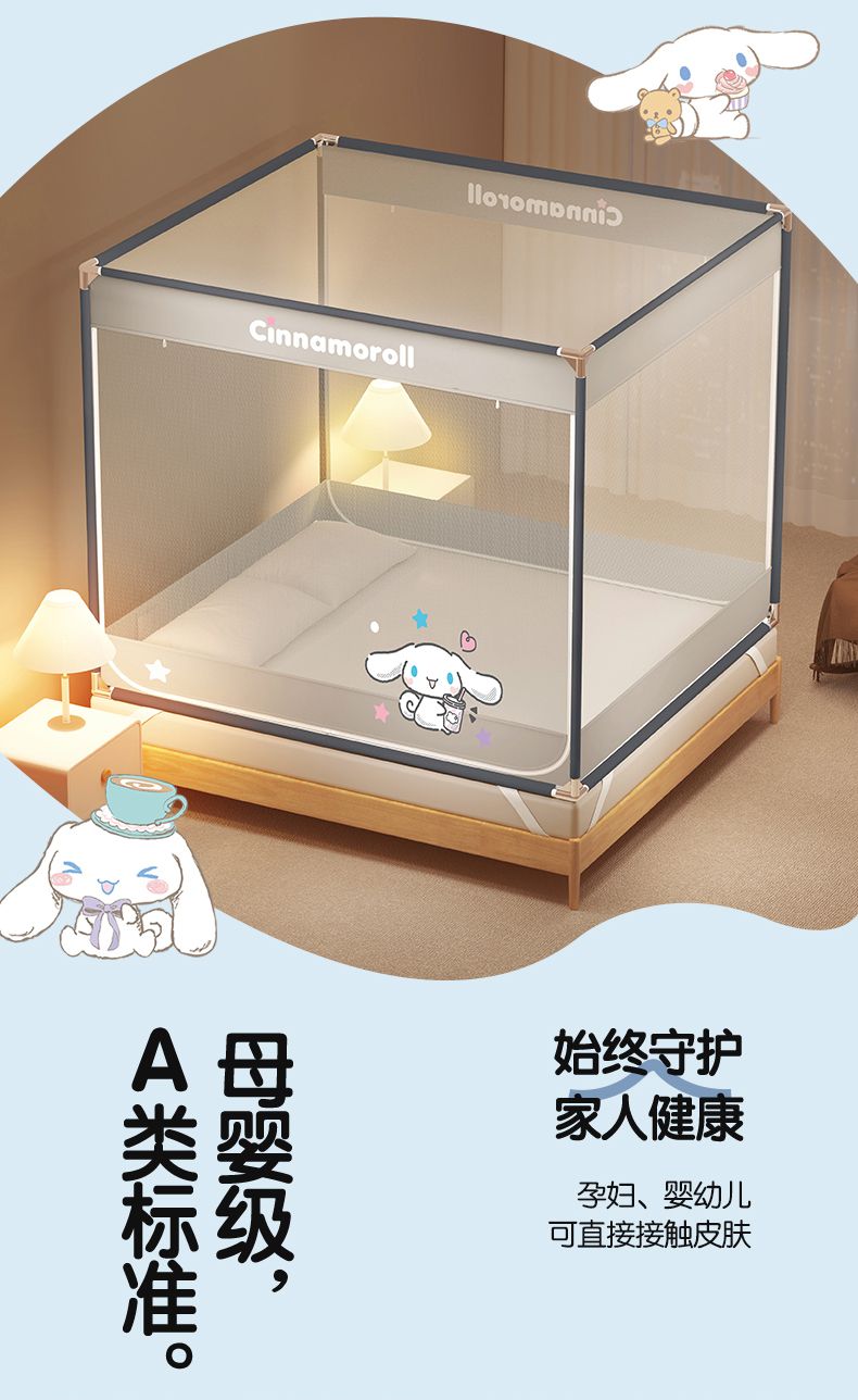 佳梦家纺 2025新款三丽鸥坐床蚊帐 奶茶玉桂-灰
