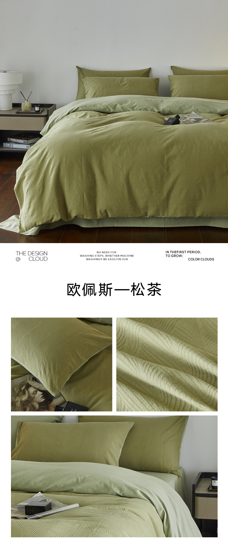 商品名称:千朵森 2025新款全棉色织提花磨毛四件套-风格二 欧佩斯-抹茶