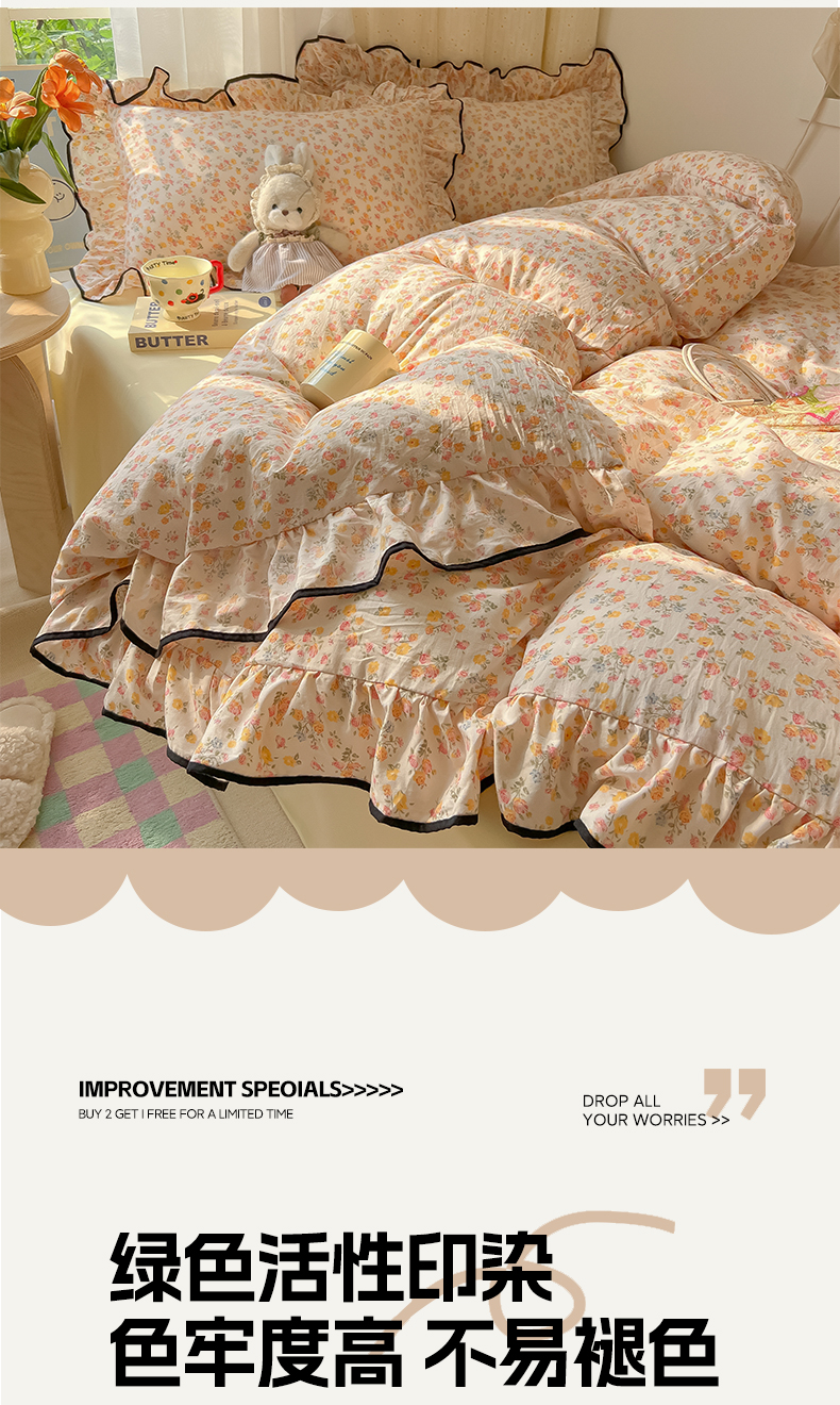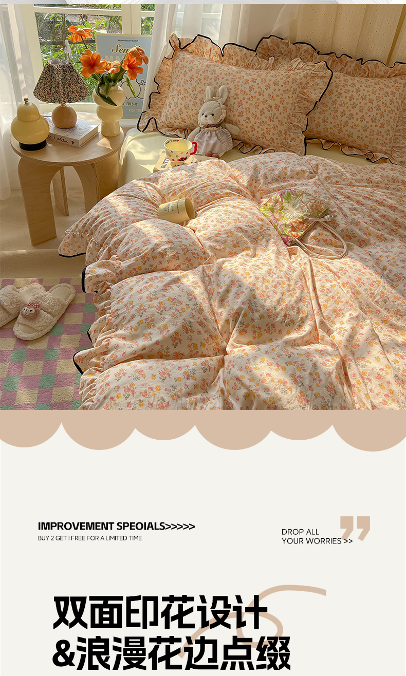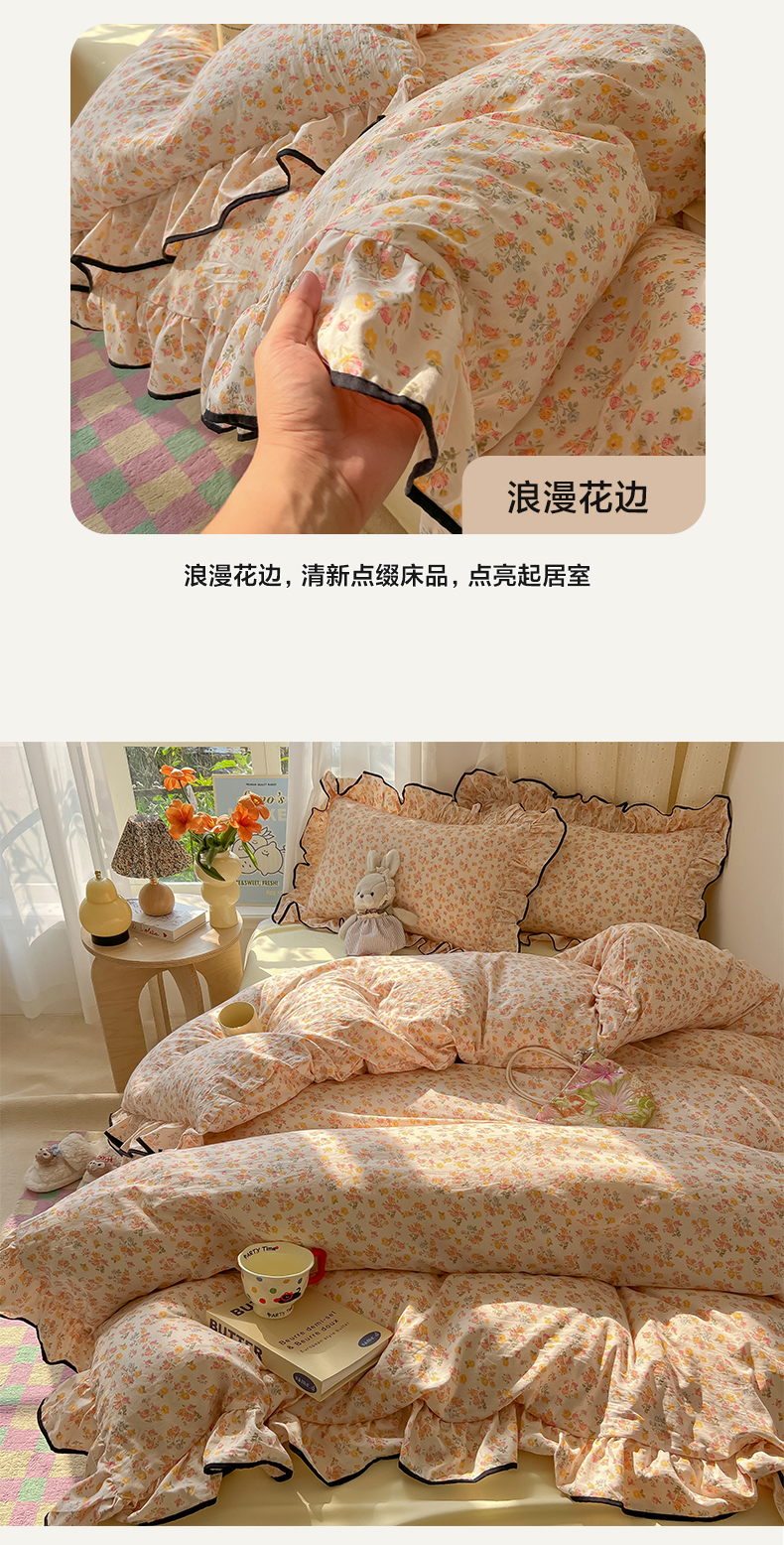 当前位置: 91家纺网 > 商品网购 > 床品套件 > 四件套 > 其它四件套 > 韩巢家纺 2025新款水洗棉大花边被套四件套直播热销款学生宿舍被罩床单三件套(提供卖家秀) 久期诗朵-黄【大花边款】