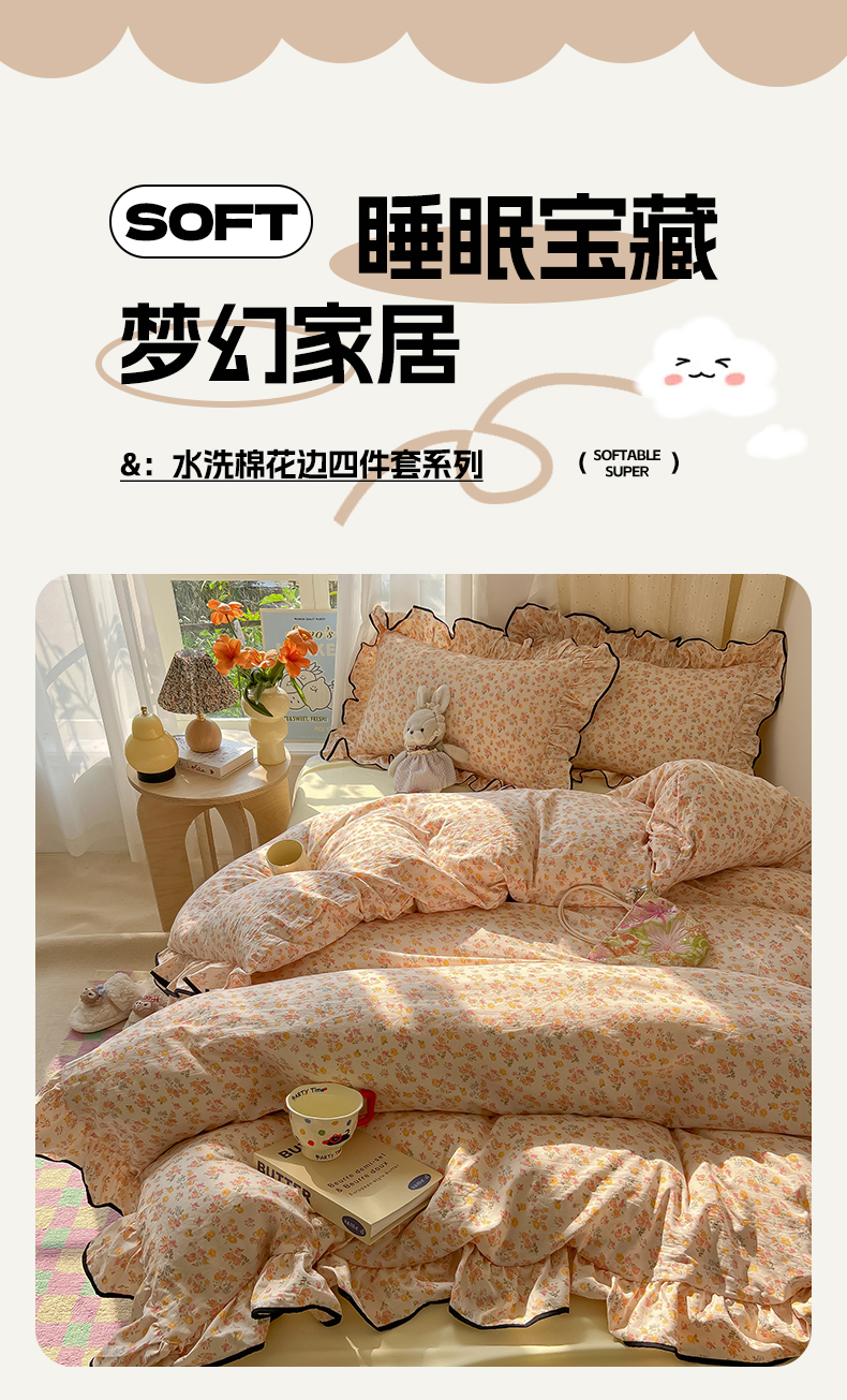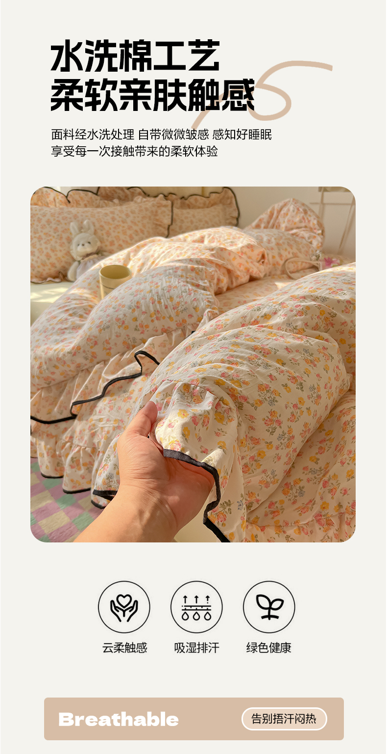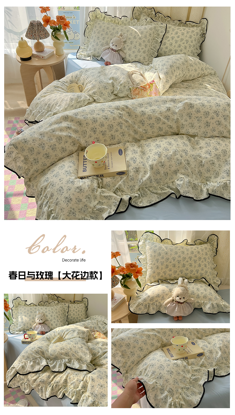 当前位置: 91家纺网 > 商品网购 > 床品套件 > 四件套 > 其它四件套 > 韩巢家纺 2025新款水洗棉大花边被套四件套直播热销款学生宿舍被罩床单三件套(提供卖家秀) 久期诗朵-黄【大花边款】