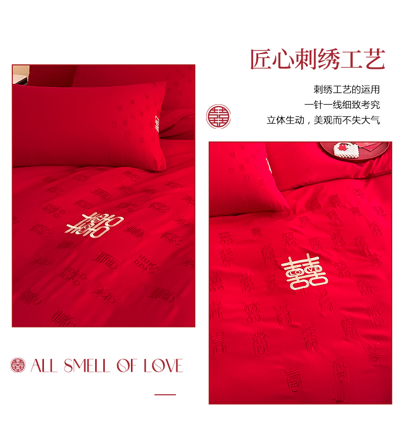 (总)火麒麟家纺 2024新款亲肤棉刺绣婚庆四件套,百年好合,成双成对,好姻缘,贺新婚,佳偶天成,龙凤情缘,玫瑰之恋,天作之合,甜甜蜜蜜,喜结良缘,喜事连连,相亲相爱,心心相印,新婚快乐,一生相伴,以爱之名