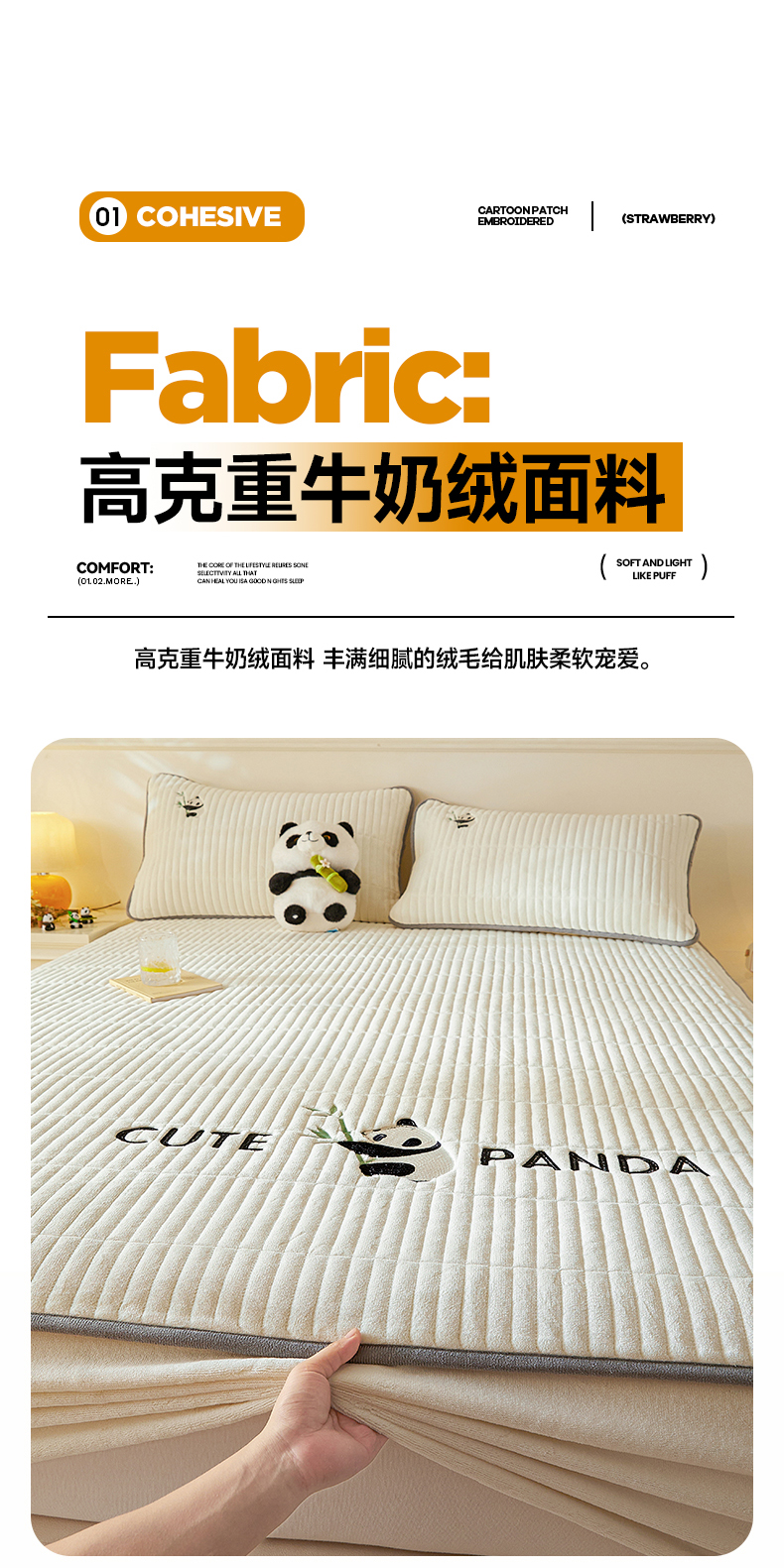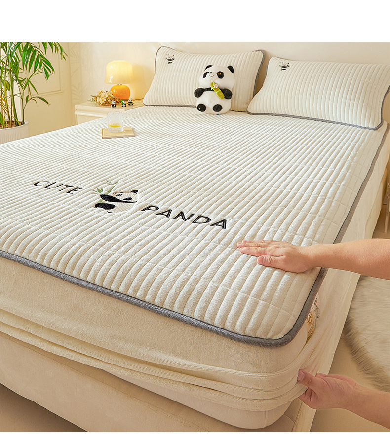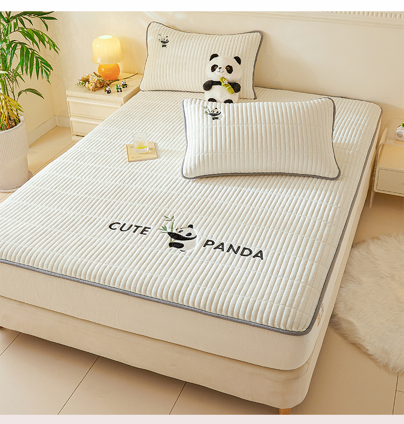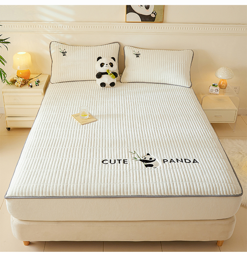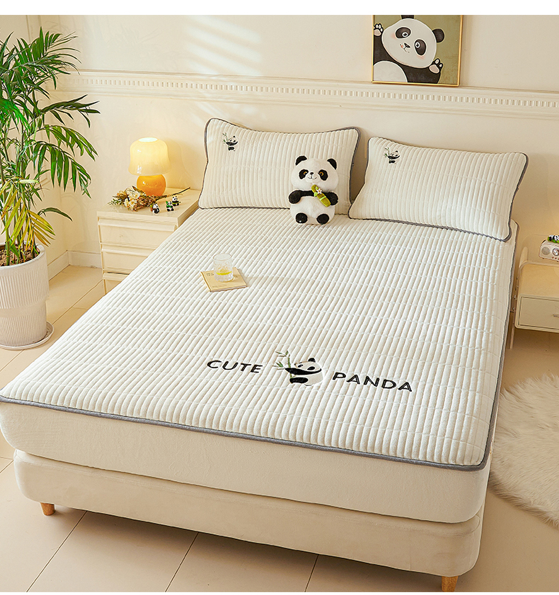• 91家纺网 家纺一手货源 找家纺 摩妮卡 2025新款刺绣牛奶绒夹棉床笠床垫保护套三件套 熊猫-白