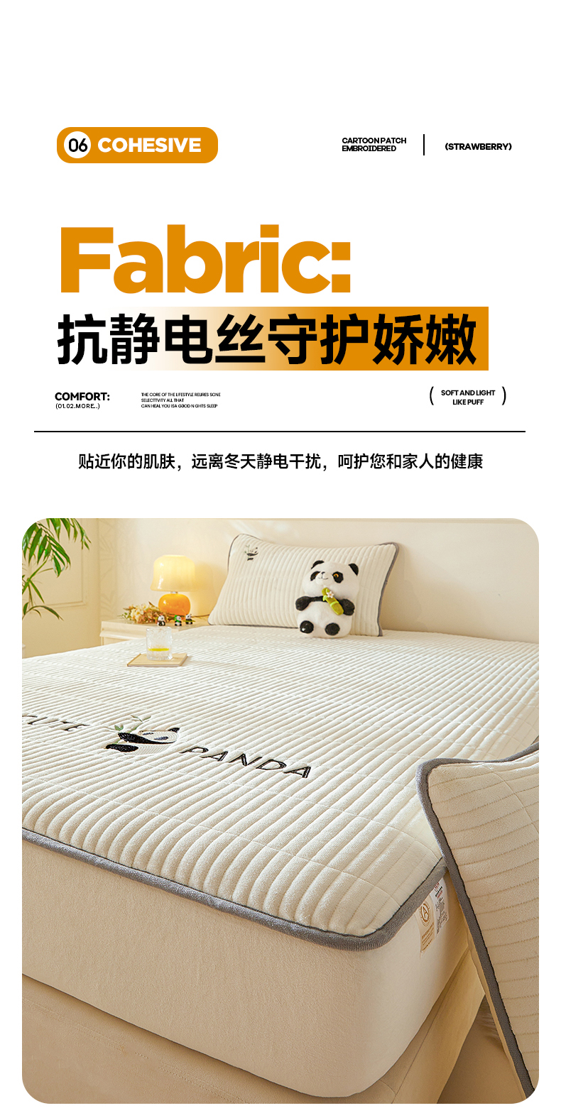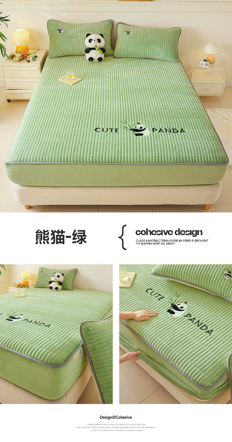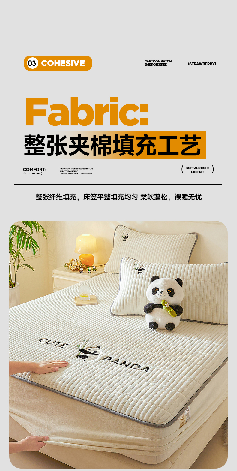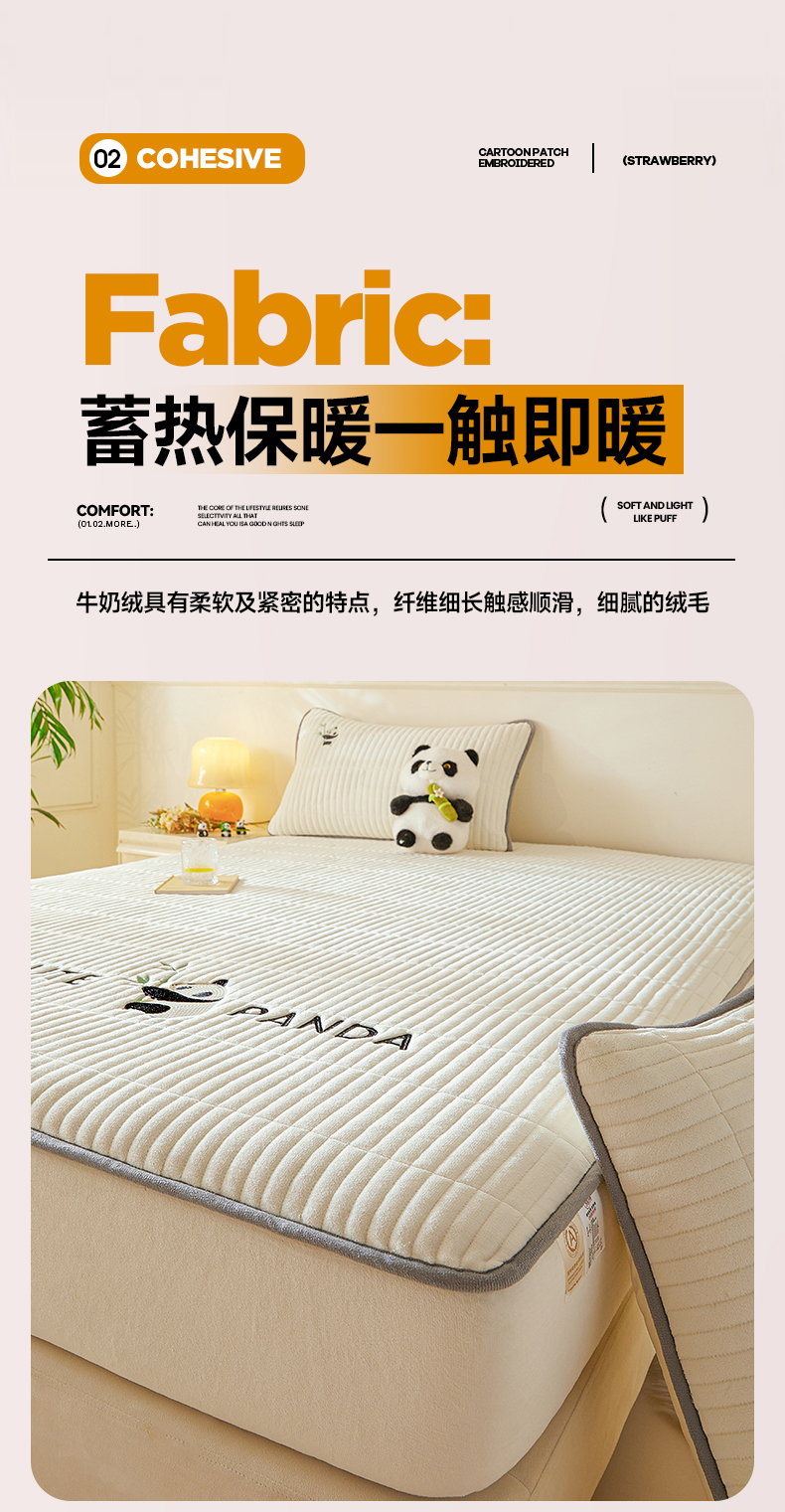 • 91家纺网 家纺一手货源 找家纺 摩妮卡 2025新款刺绣牛奶绒夹棉床笠床垫保护套三件套 熊猫-白