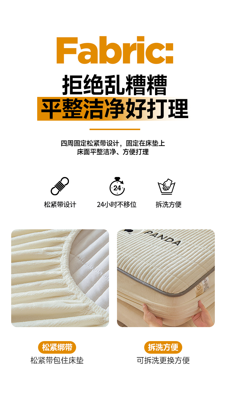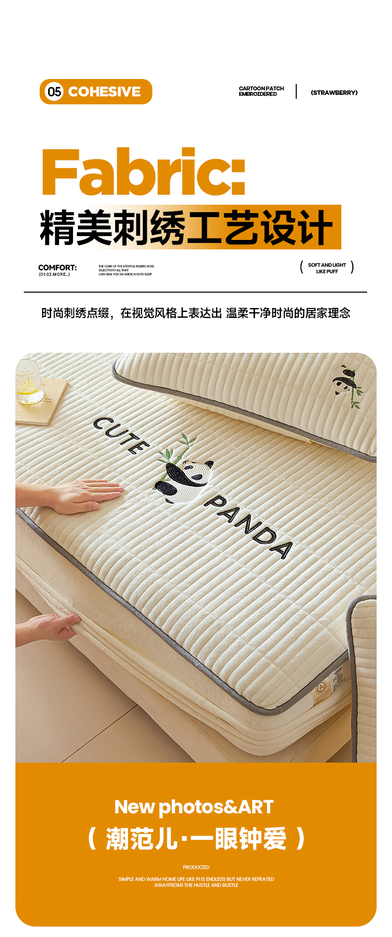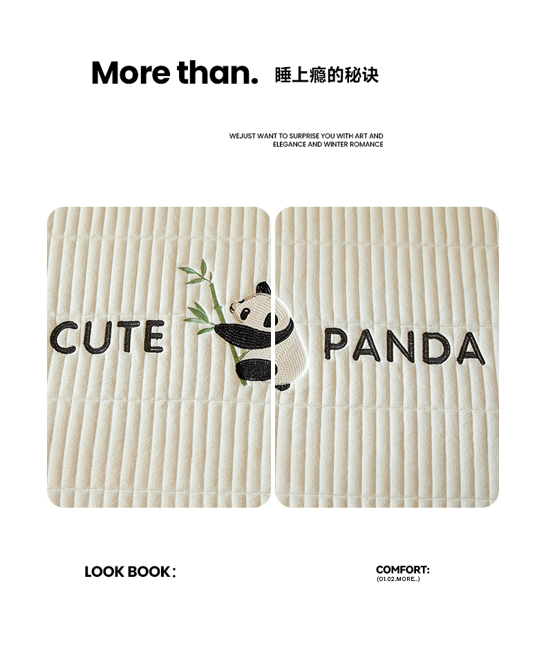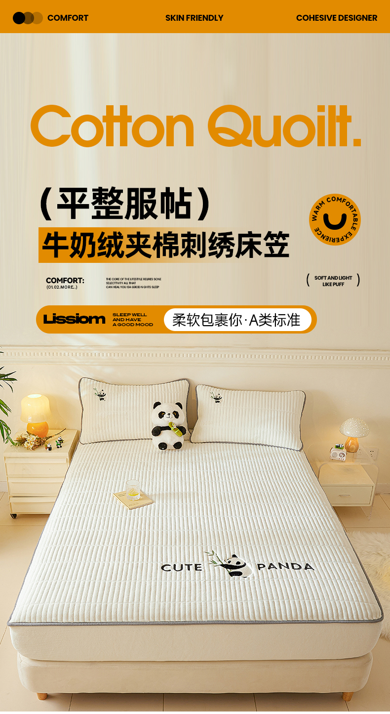 • 91家纺网 家纺一手货源 找家纺 摩妮卡 2025新款刺绣牛奶绒夹棉床笠床垫保护套三件套 熊猫-白