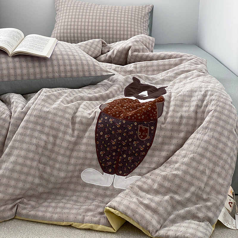 (总)贝尔 2025新款全棉色织提花贴布绣大豆被 被子被芯