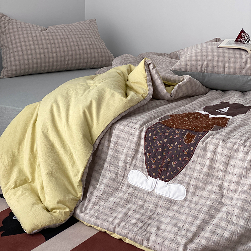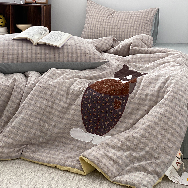 • 91家纺网 家纺一手货源 找家纺 (总)贝尔 2025新款全棉色织提花贴布绣大豆被  被子被芯