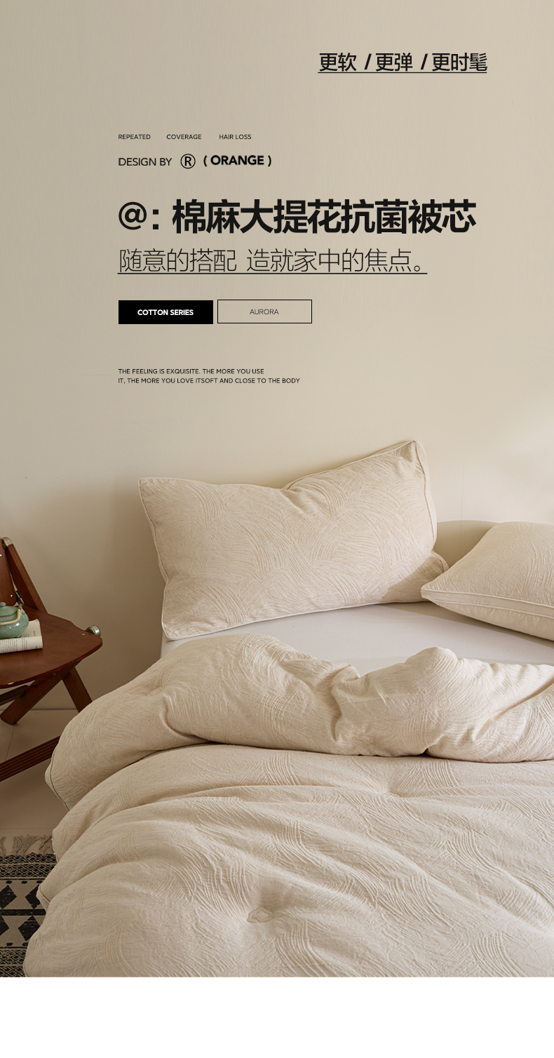 • 91家纺网 家纺一手货源 找家纺 一加一 2025新款棉麻大提花抗菌被子被芯 浮光织影