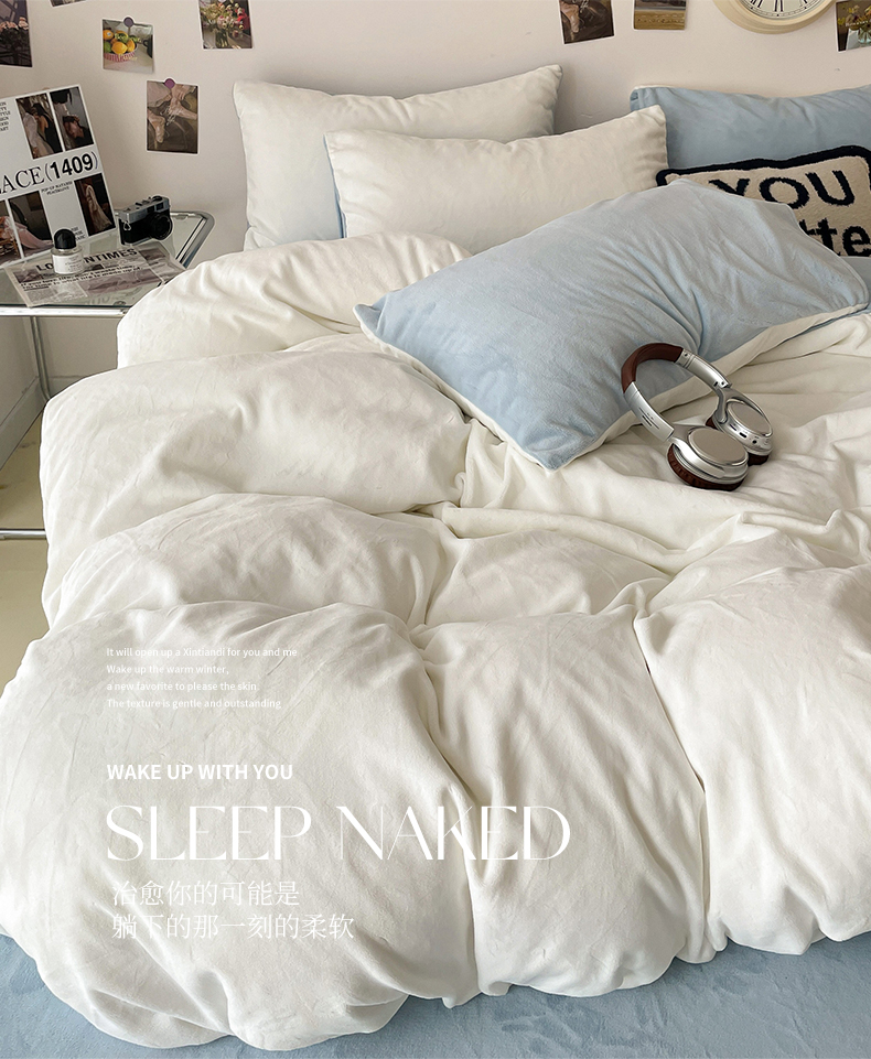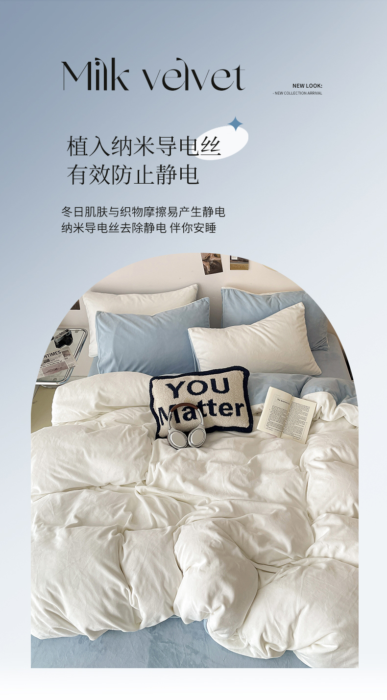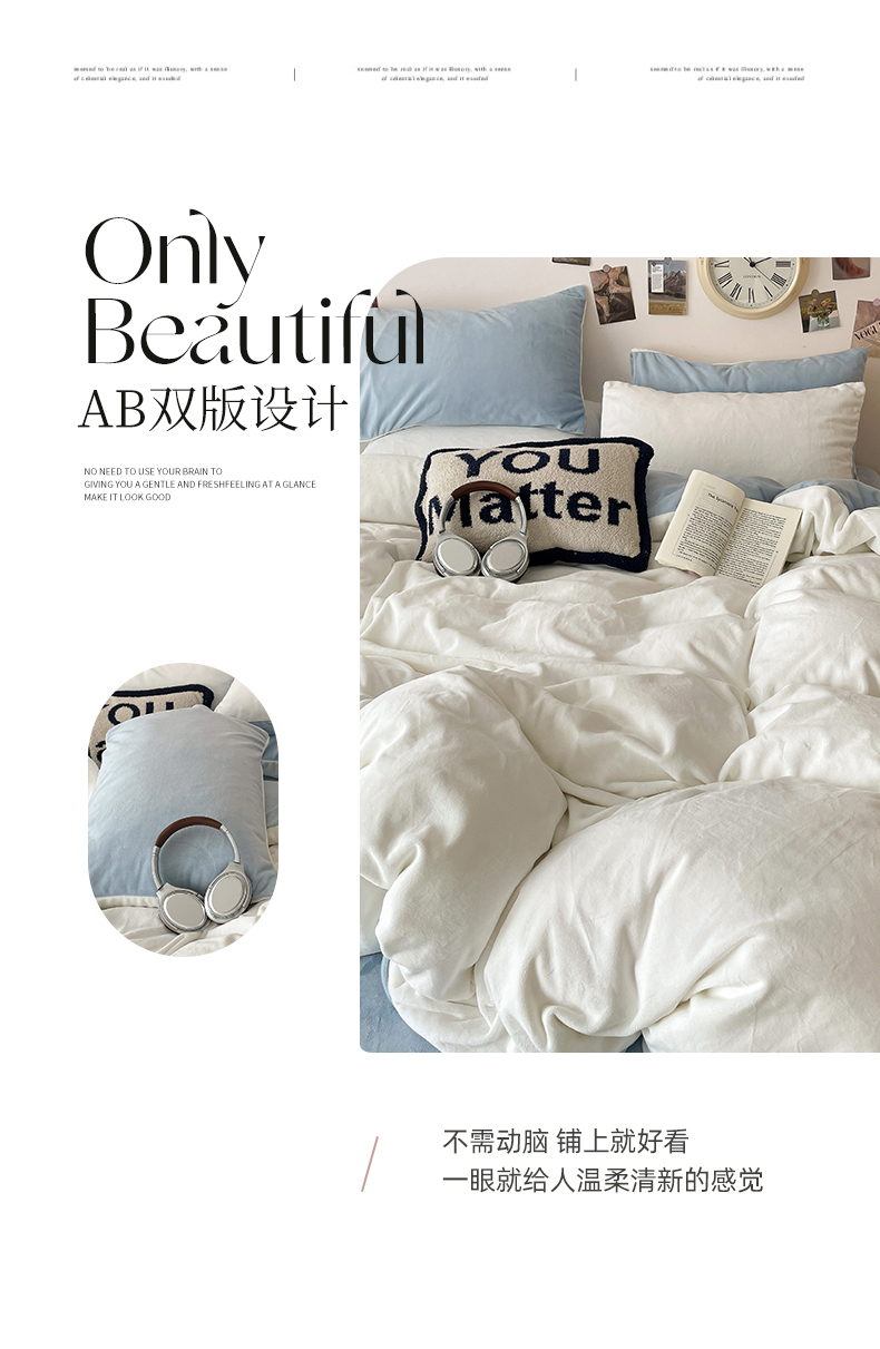当前位置: 91家纺网 > 商品网购 > 床品套件 > 四件套 > 牛奶绒四件套 > 顺兴家居 2025新款简约纯色双拼牛奶绒四件套(风格一) 奶白+婴儿蓝