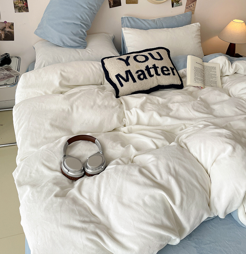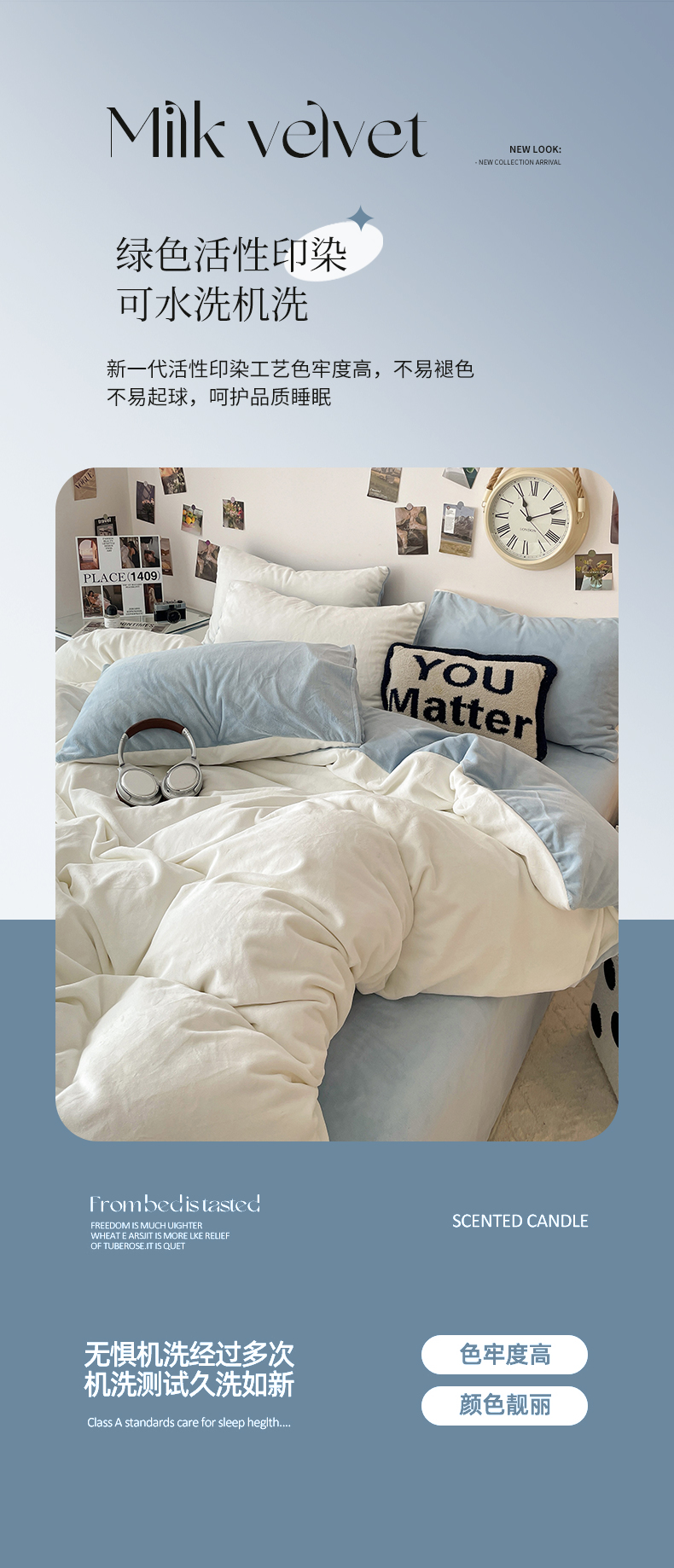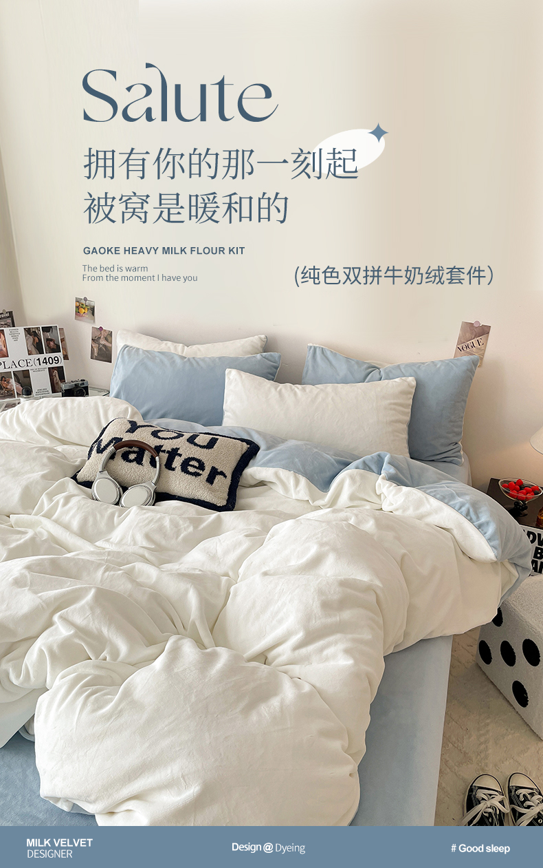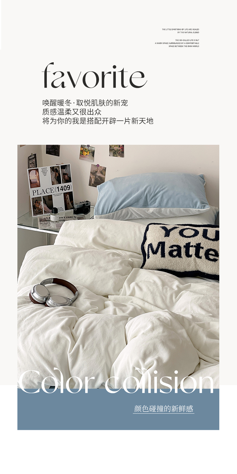 当前位置: 91家纺网 > 商品网购 > 床品套件 > 四件套 > 牛奶绒四件套 > 顺兴家居 2025新款简约纯色双拼牛奶绒四件套(风格一) 奶白+婴儿蓝