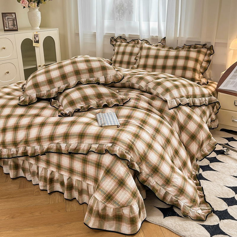 商品名称:尚美 2025新款法式小黑边云感四件套床盖款 兰格