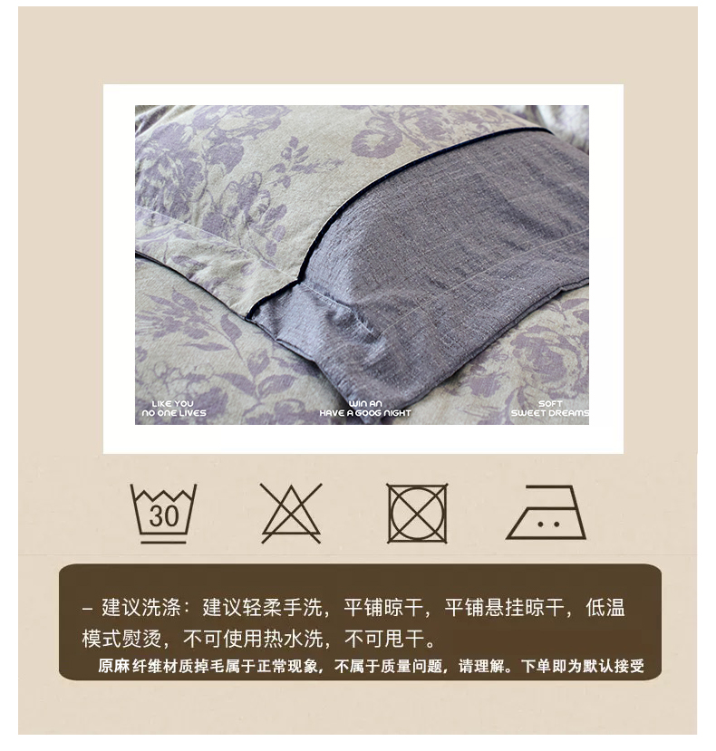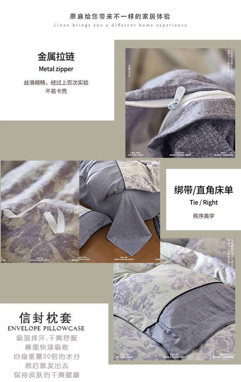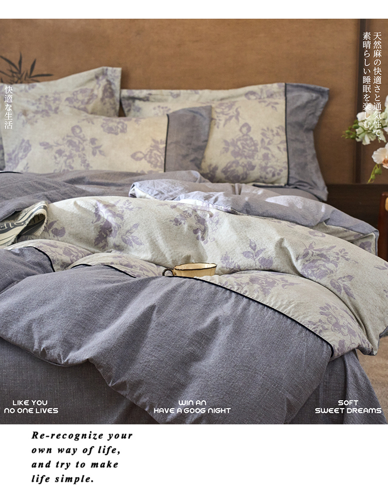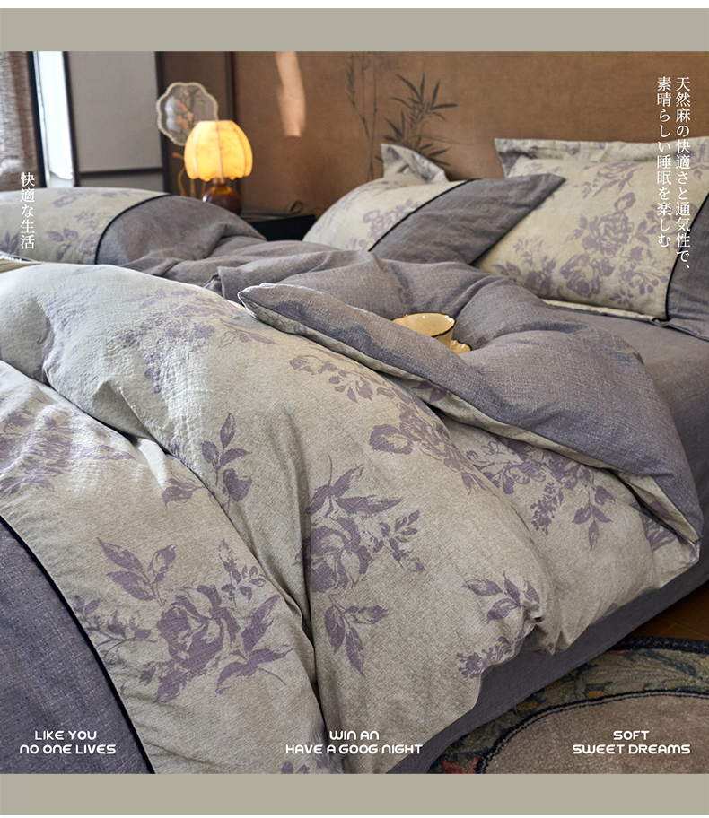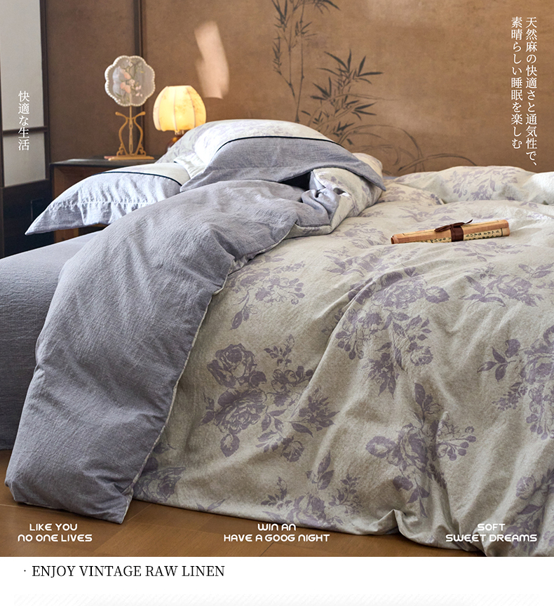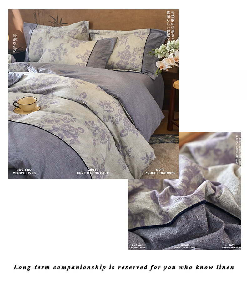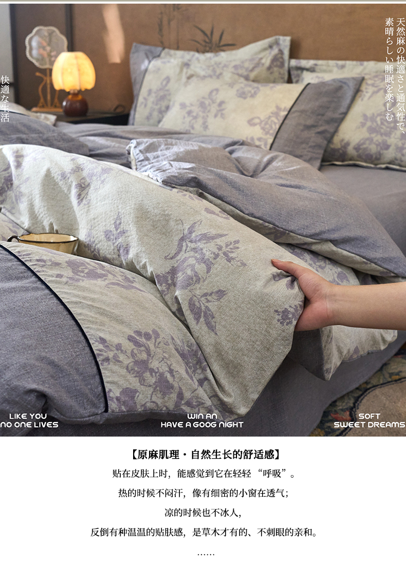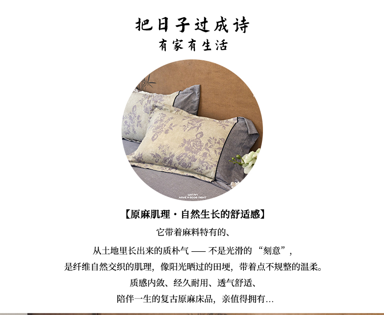 商品名称:悦织湾家纺 2025新款复古原麻四件套天然质朴舒适透气轻奢中式床单床笠款床上用品四件套 复古原麻-紫嫣