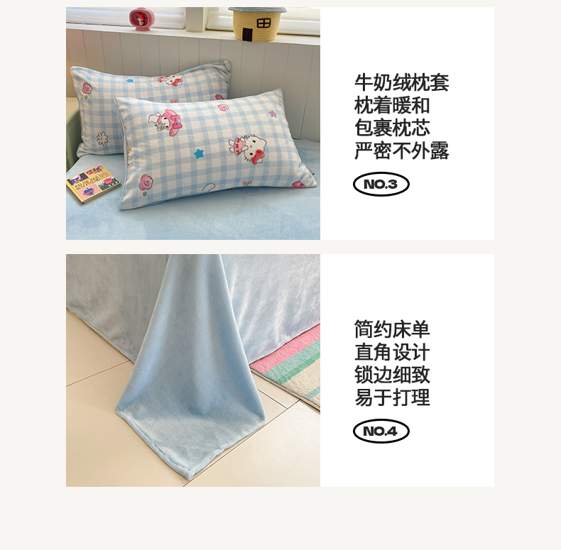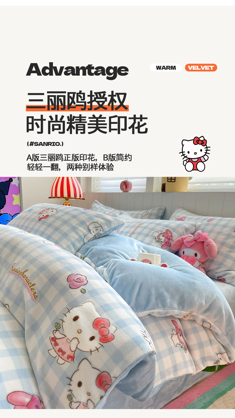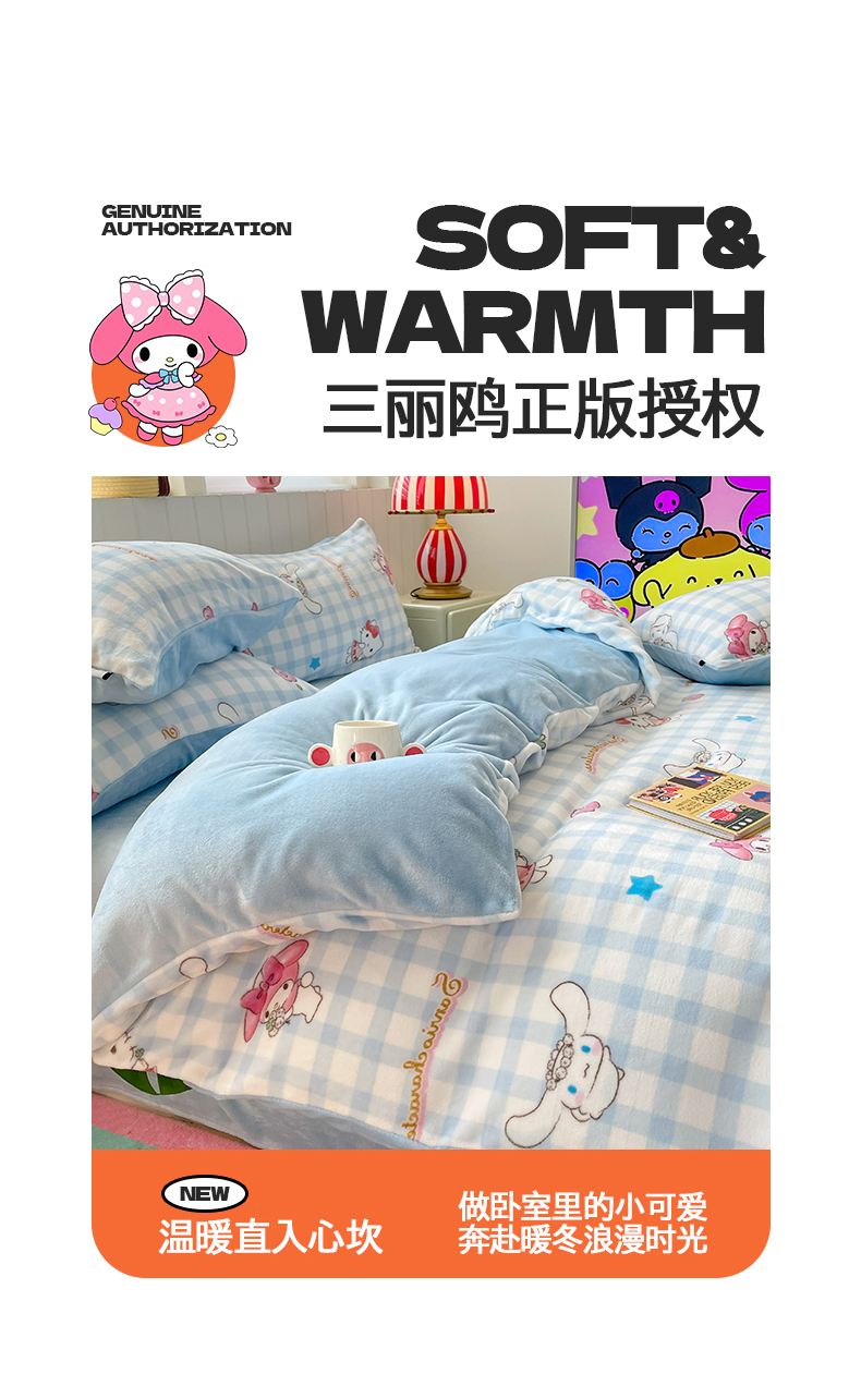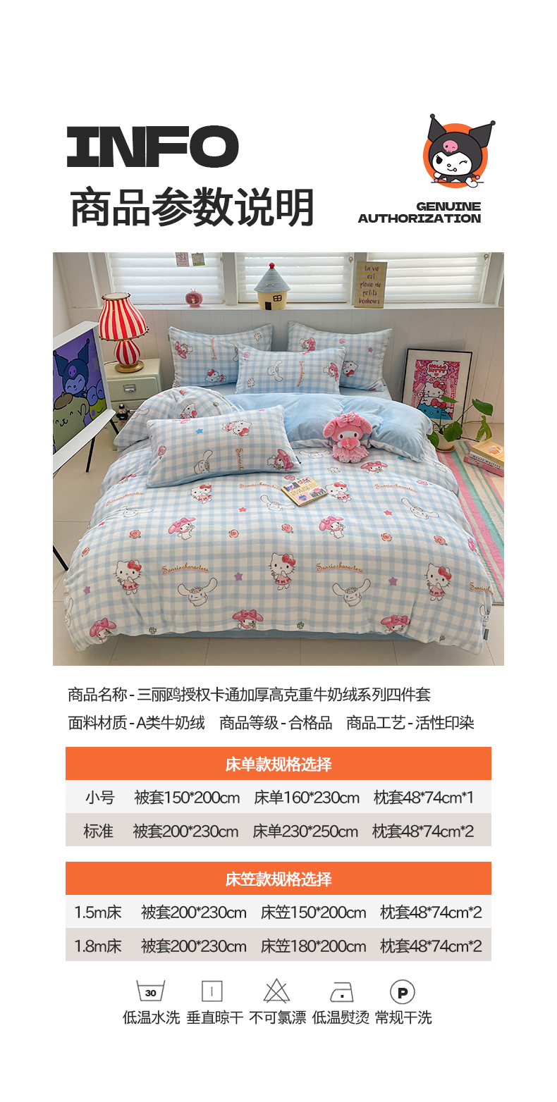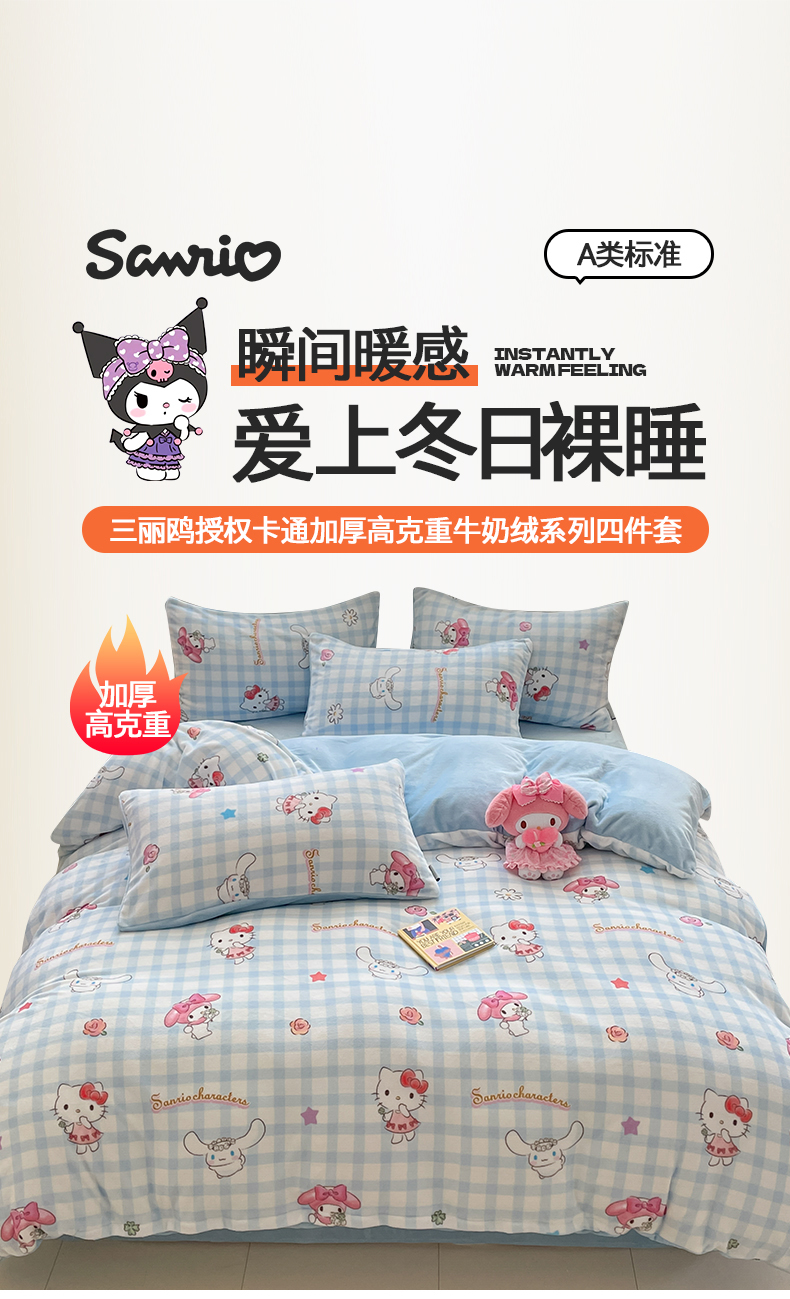 当前位置: 91家纺网 > 商品网购 > 床品套件 > 四件套 > 牛奶绒四件套 > 金爱家 2025新款A类正版三丽鸥授权卡通加厚高克重牛奶绒系列四件套 绒三丽鸥-少女梦