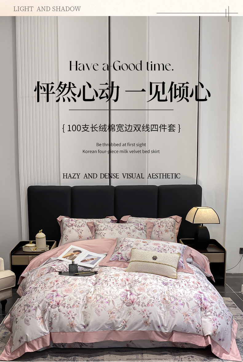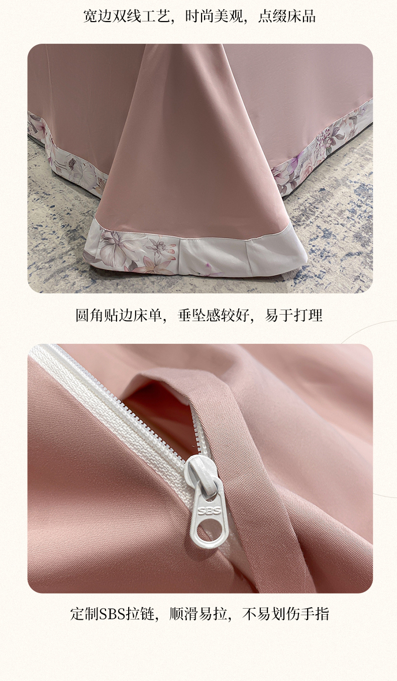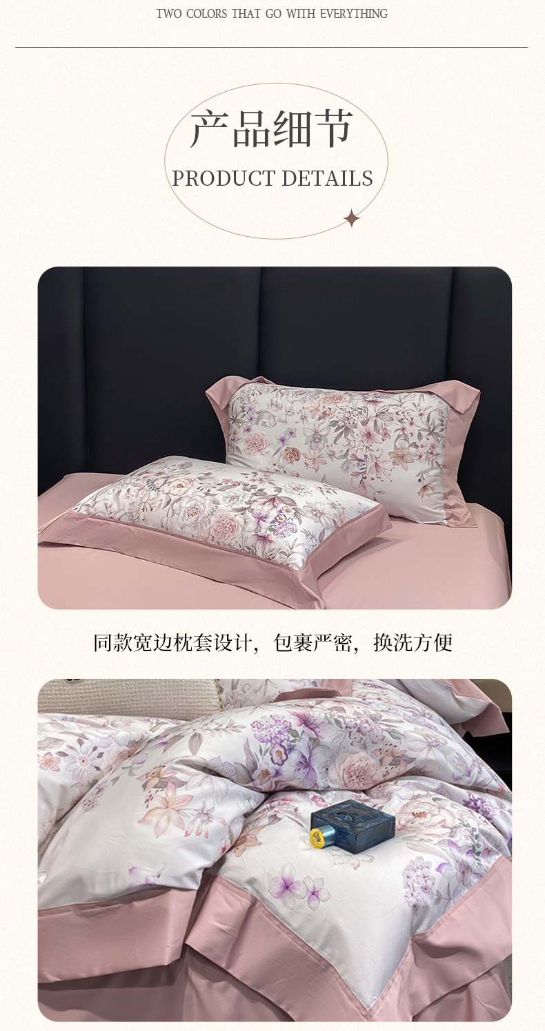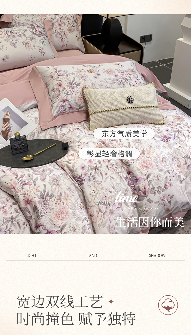 (总)娇逸家居 2025新款高克重A类数码印花牛奶绒双拼边款四件套,采薇灰,扶桑,浅影,秋灵粉,秋灵黄,秋灵绿,舜华粉,采薇米,舜华绿,仙客,栩蝶,璎珞,玉树,芸芙