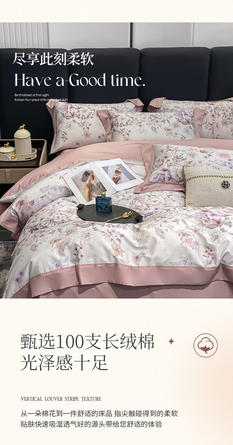 娇逸家居 2025新款100支新疆长绒棉纯棉数码印花全棉四件套(专版花型) 沐熙-豆沙