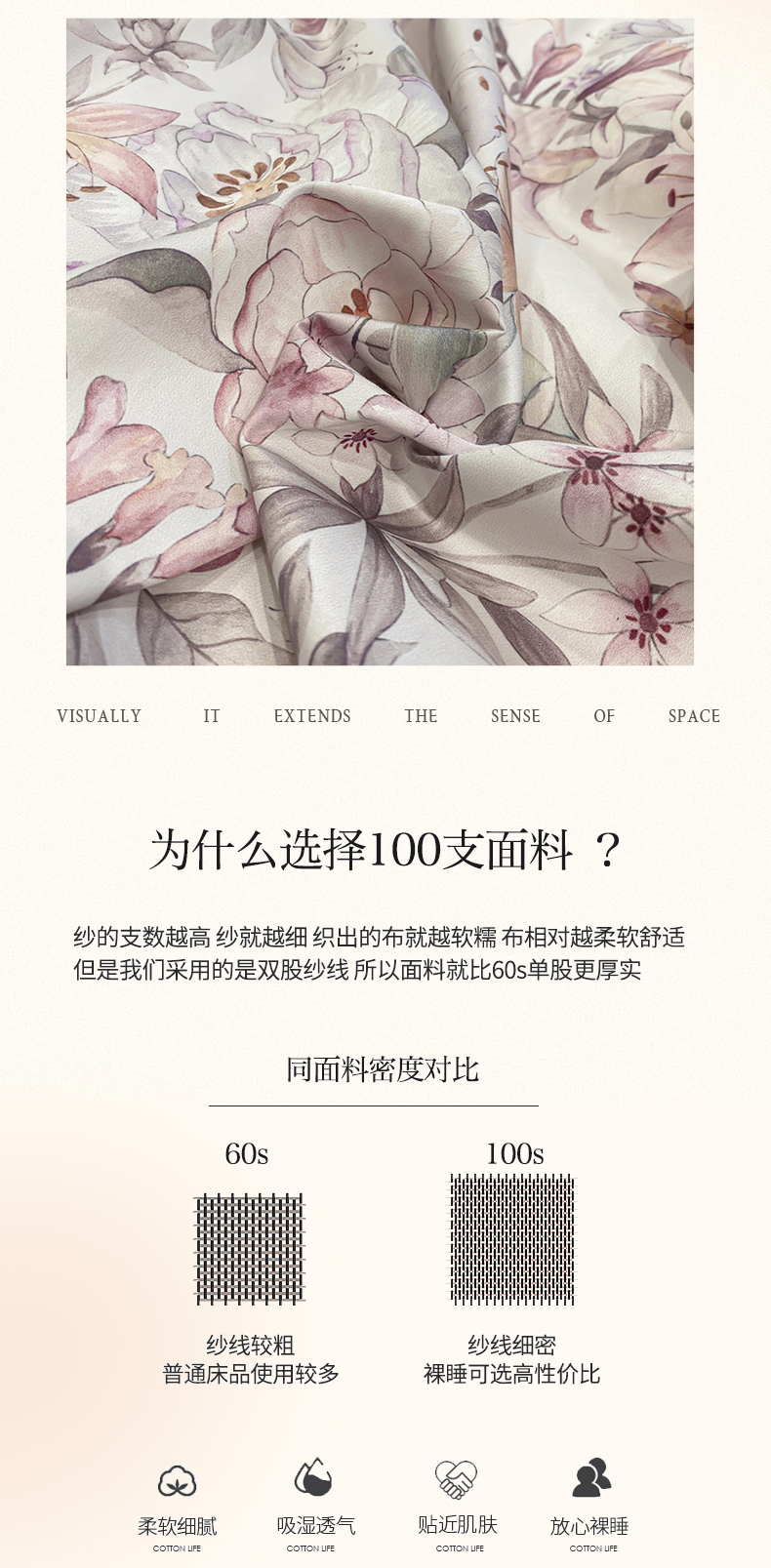 商品名称:娇逸家居 2025新款100支新疆长绒棉纯棉数码印花全棉四件套(专版花型) 沐熙-豆沙