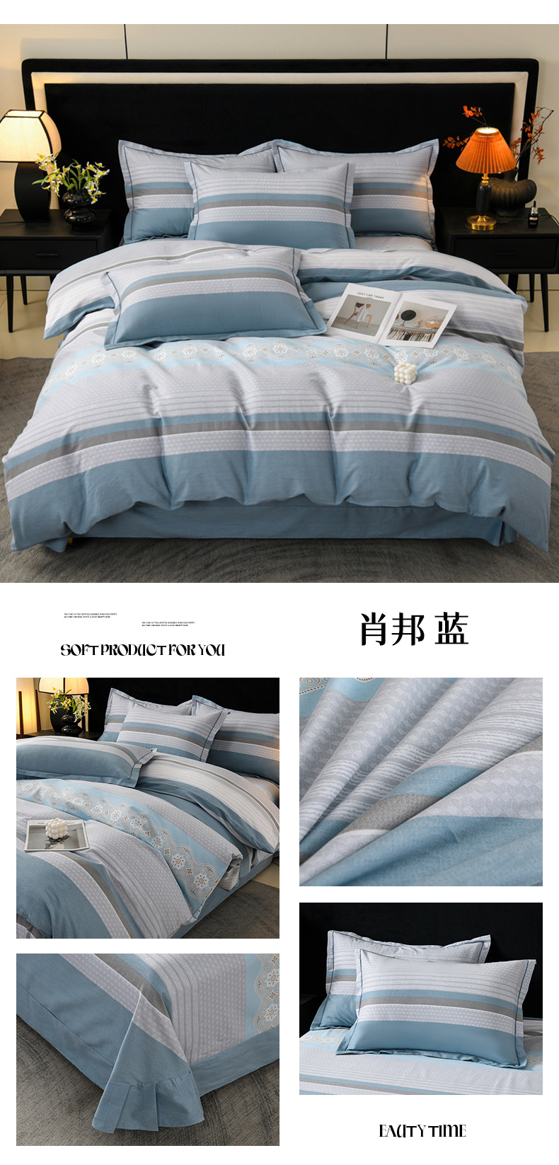 商品名称:润淳家居 2025新款百分百全棉磨毛四件套 肖邦 蓝
