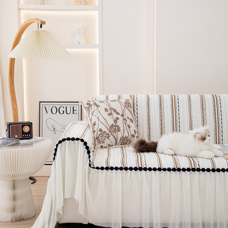 当前位置: 91家纺网 > 商品网购 > 居家布艺 > 坐垫/椅垫/沙发垫 > 沙发 > 沐沐家纺 2026新款织织暮圆点沙发巾-场景一 浅咖