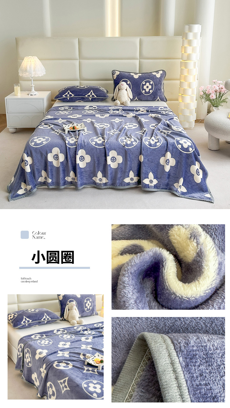 商品名称:欧喜璐 2025新款卡通印花加厚牛奶绒多功能毛毯 小圆圈