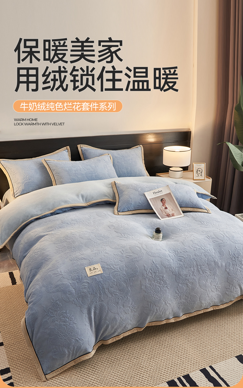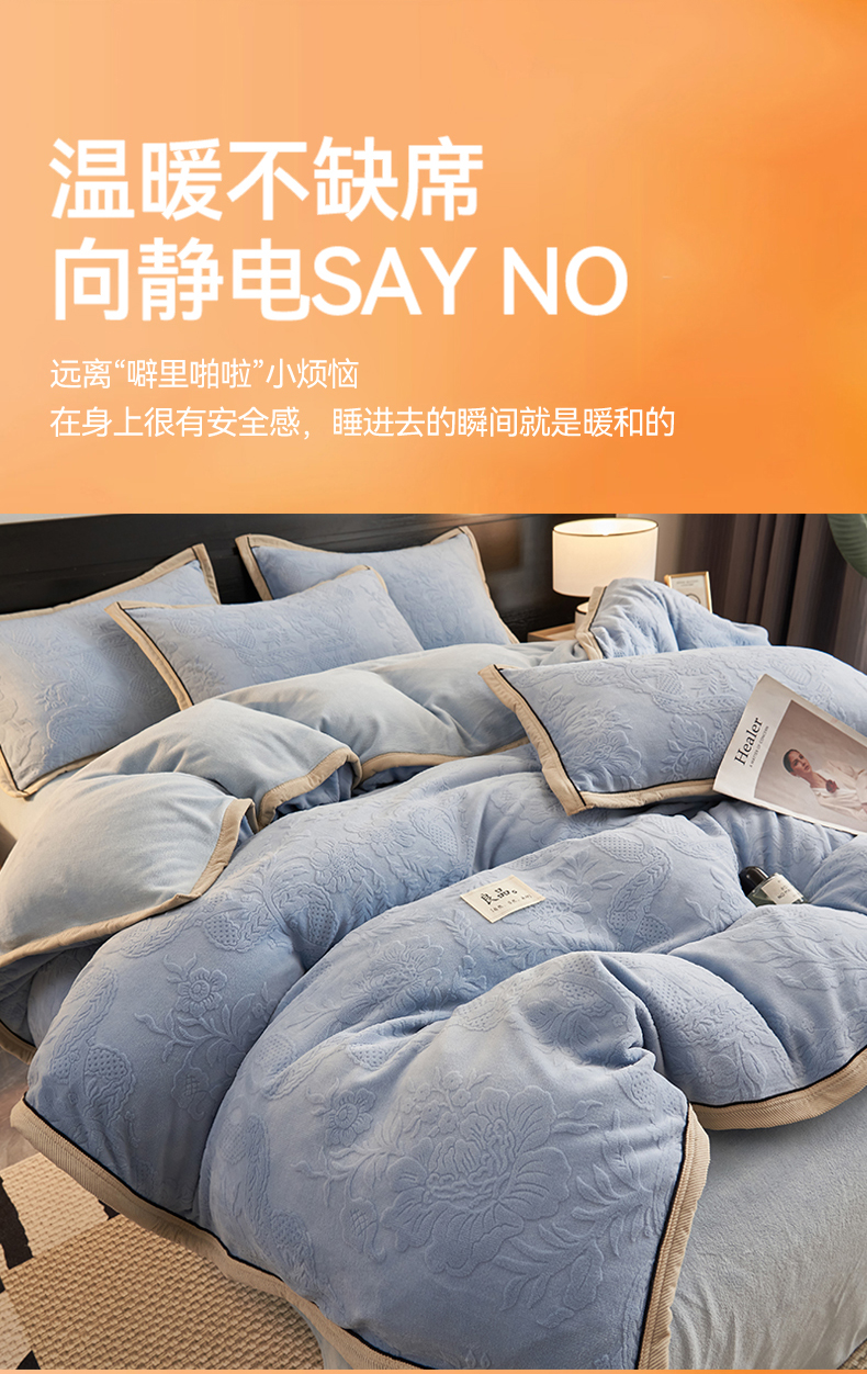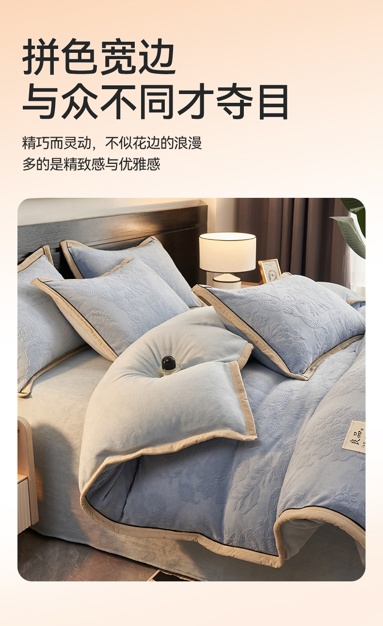 当前位置: 91家纺网 > 商品网购 > 床品套件 > 四件套 > 牛奶绒四件套 > 恒爱家纺 2025新款牛奶绒纯色烂花四件套 雾绕山岚-天蓝