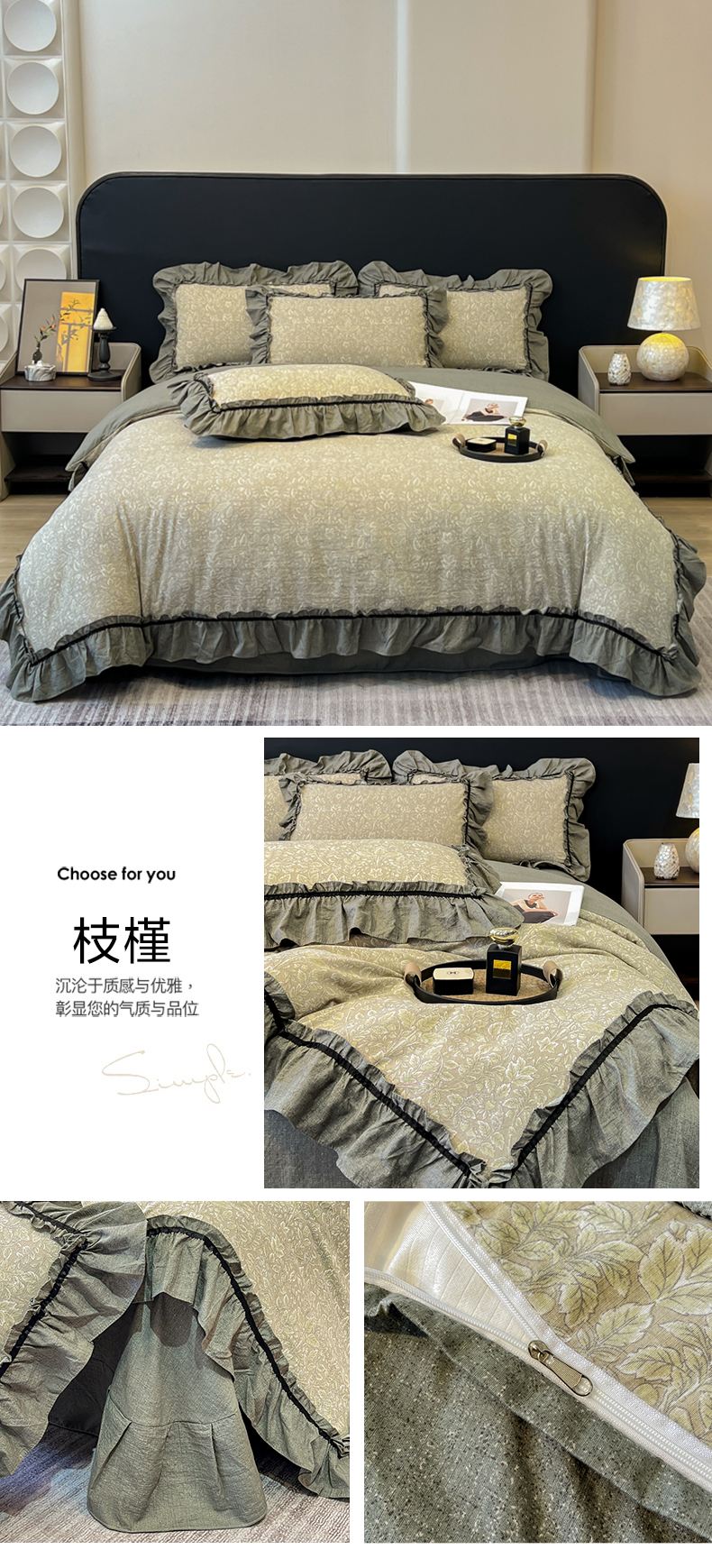 商品名称:玉海棠家纺 2025新款法式花边棉麻四件套 花开满园