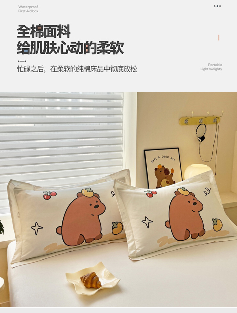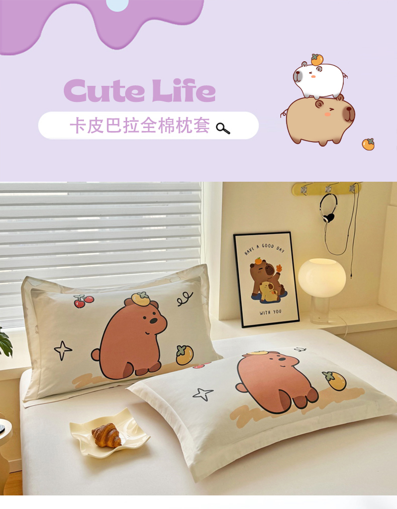 蘭菲家纺 2025新款全棉大版卡皮巴拉系列单品枕套 豚世界