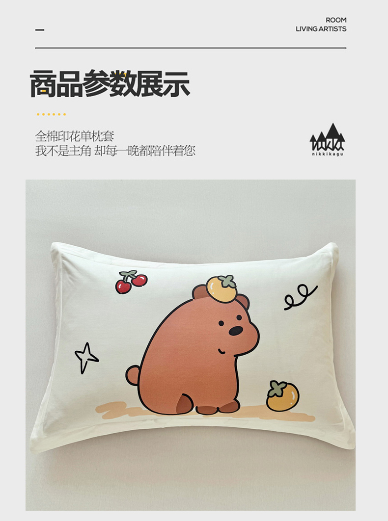 商品名称:蘭菲家纺 2025新款全棉大版卡皮巴拉系列单品枕套 豚世界