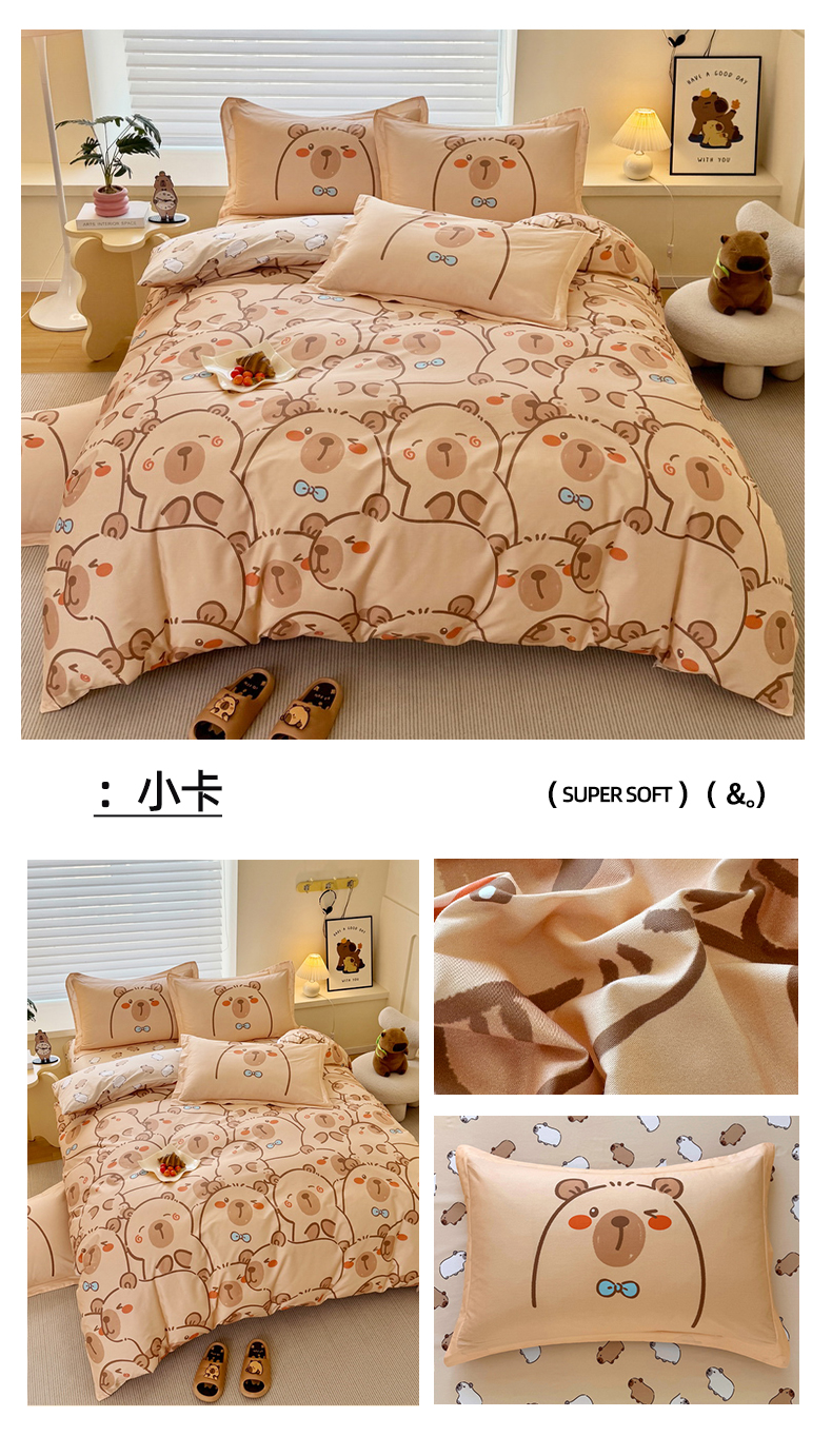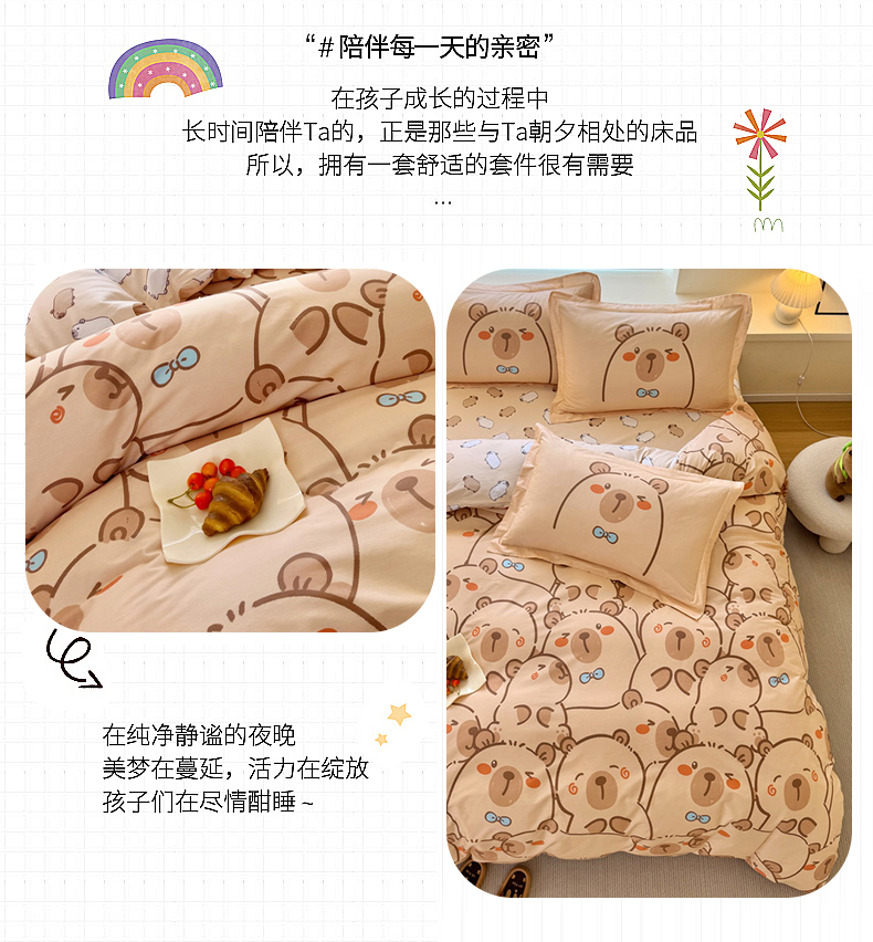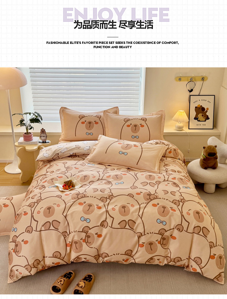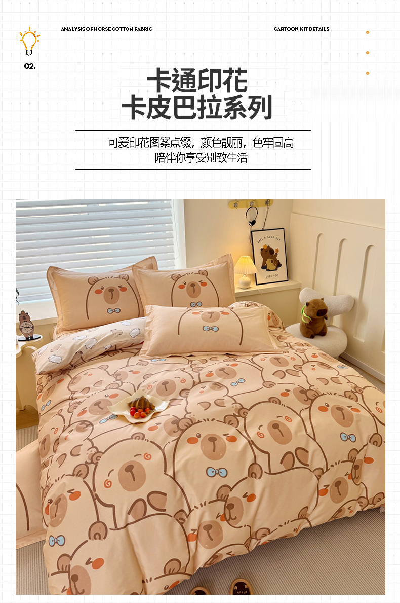 当前位置: 91家纺网 > 商品网购 > 床品套件 > 四件套 > 全棉普通四件套 > 蘭菲家纺 2025新款全棉小版卡皮巴拉系列四件套 小卡