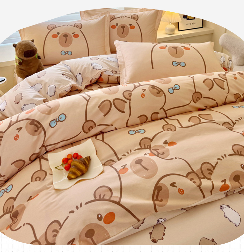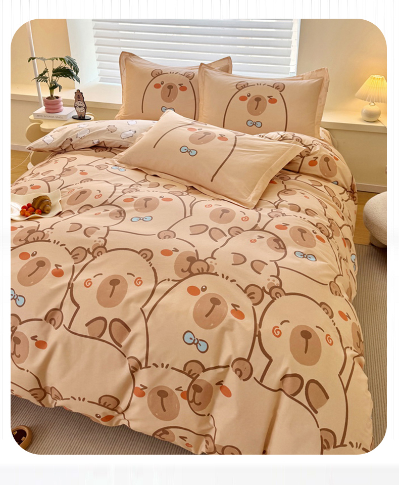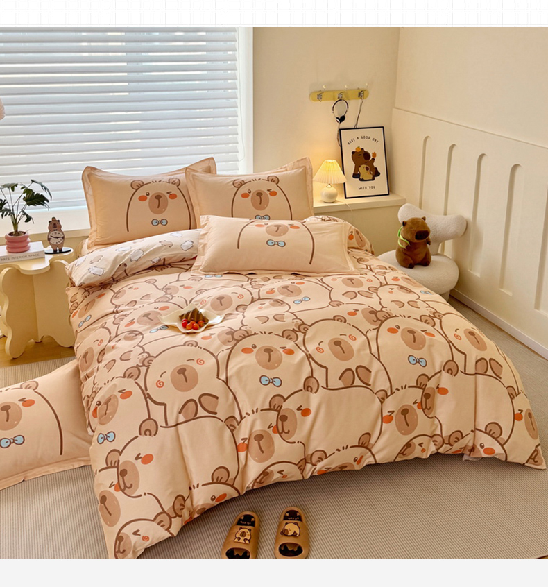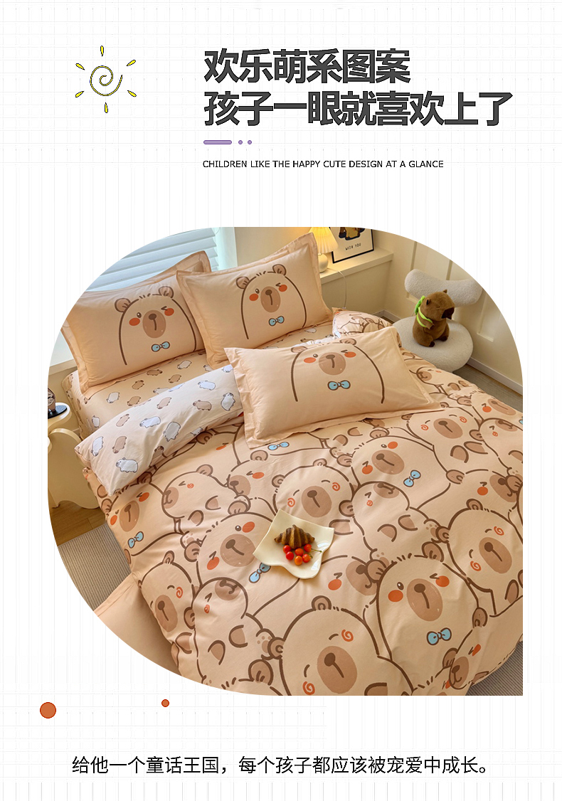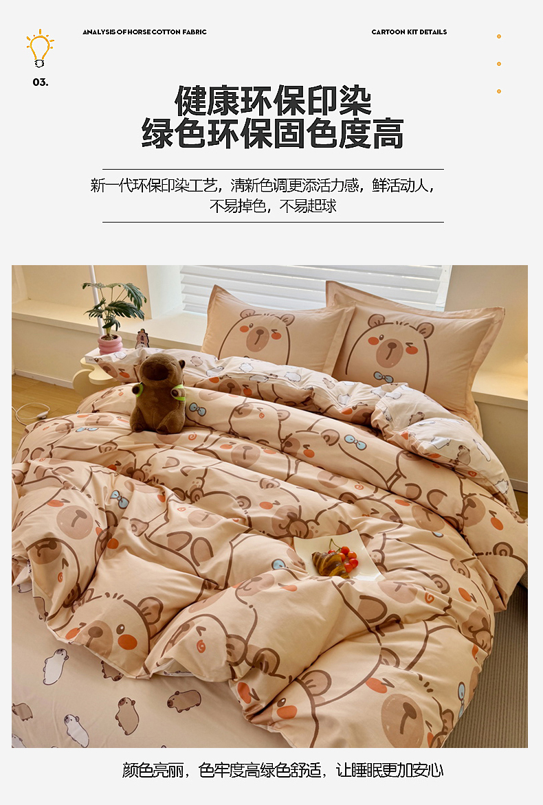 当前位置: 91家纺网 > 商品网购 > 床品套件 > 四件套 > 全棉普通四件套 > 蘭菲家纺 2025新款全棉小版卡皮巴拉系列四件套 小卡