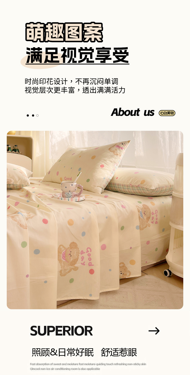 • 91家纺网 家纺一手货源 找家纺 DoDo 兜兜 2025新款卡通全棉纯棉小清新单品床单系列 (可定做尺寸) 多彩笑脸