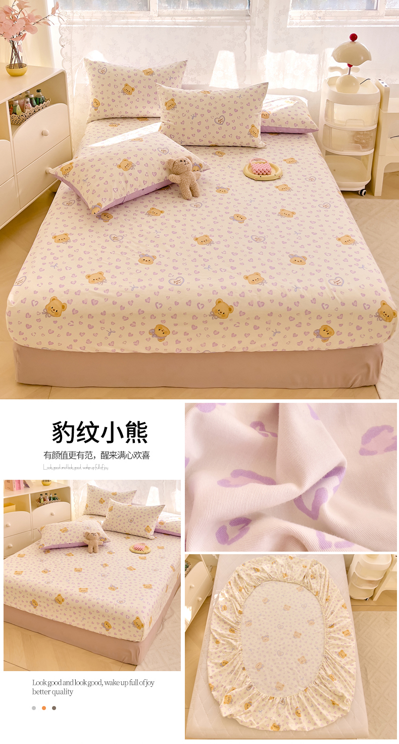 • 91家纺网 家纺一手货源 找家纺 DoDo 兜兜 2026新款卡通全棉纯棉小清新单品床笠系列 (可定做尺寸) 豹纹小熊