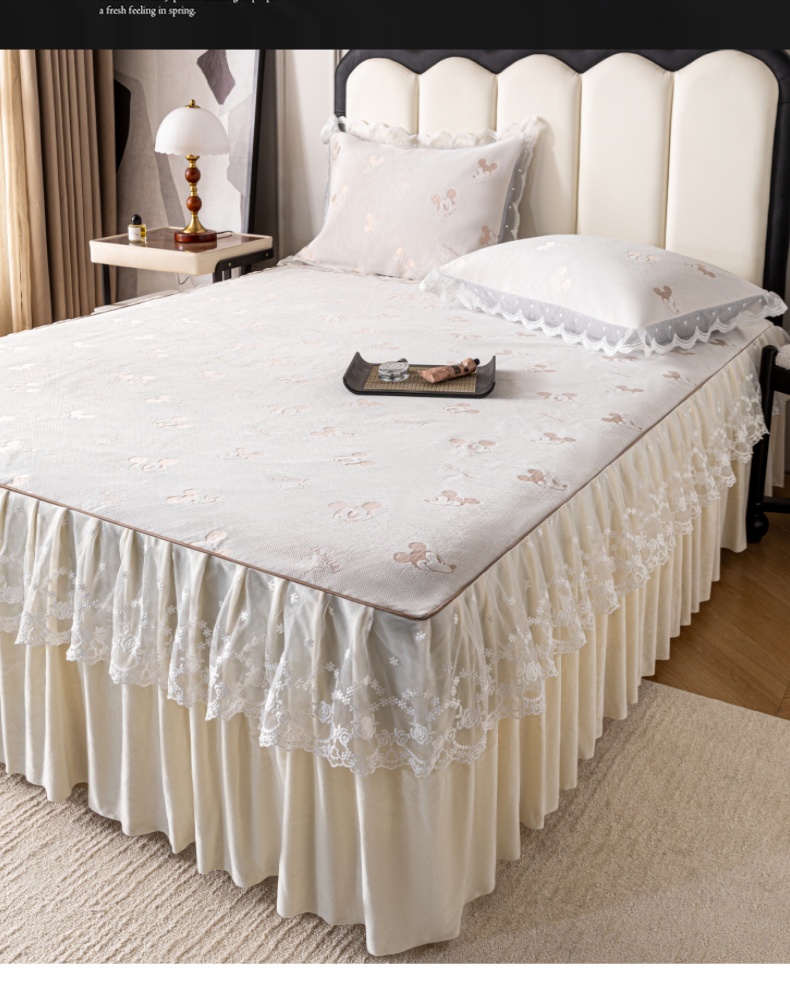 商品名称:手艺人家纺 2025新款雪尼尔床裙床笠 X05-粉