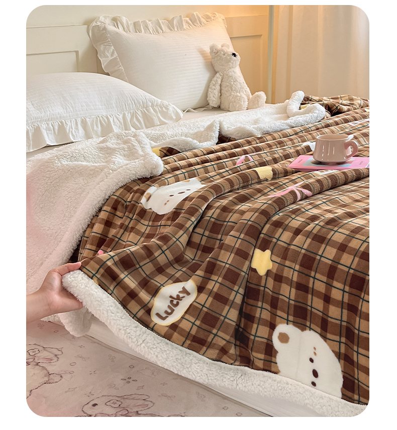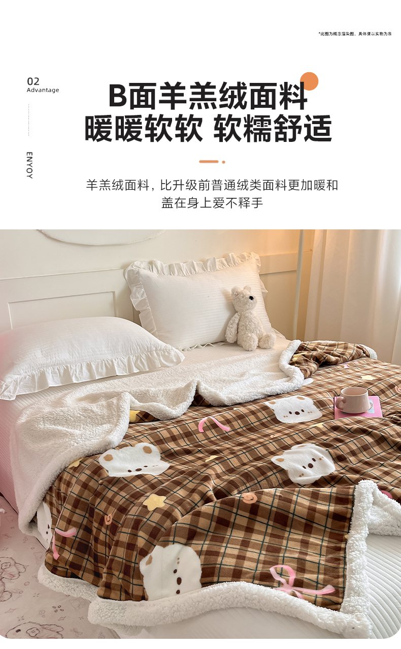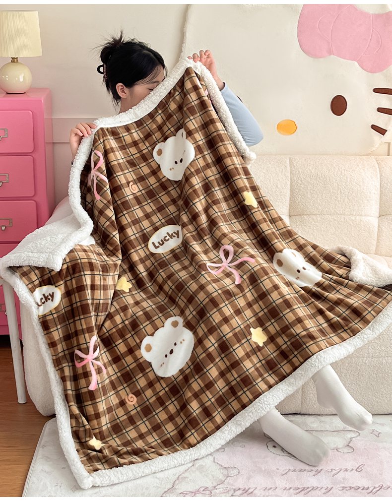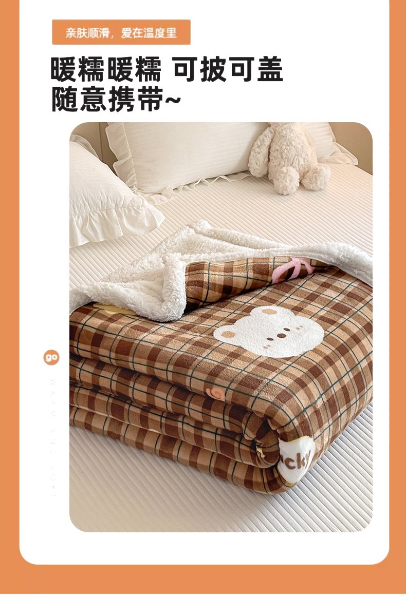 川悦生活 2025新款牛奶绒羊羔绒毯子毛毯 毛毯茶酥小熊