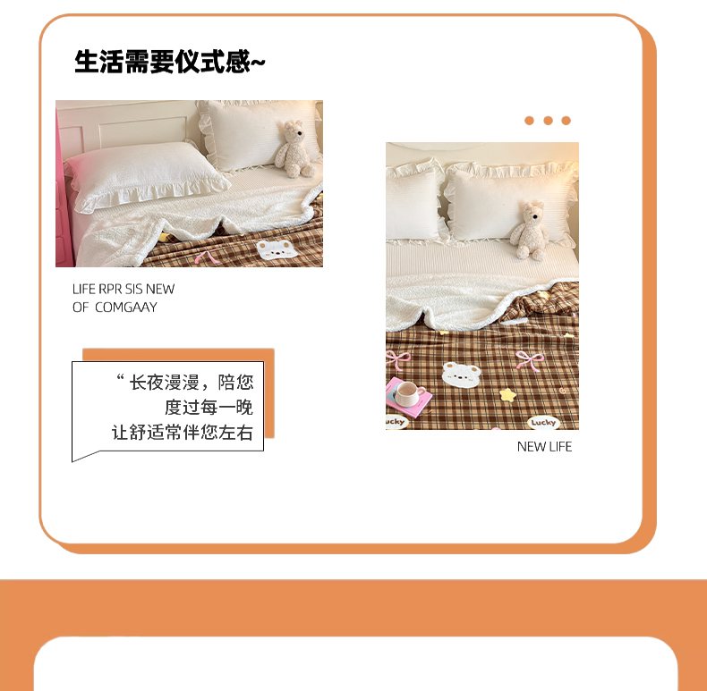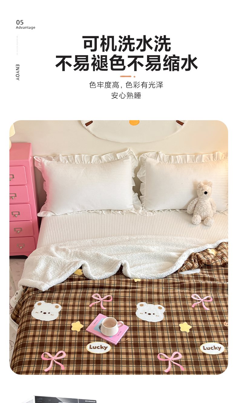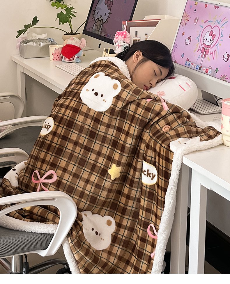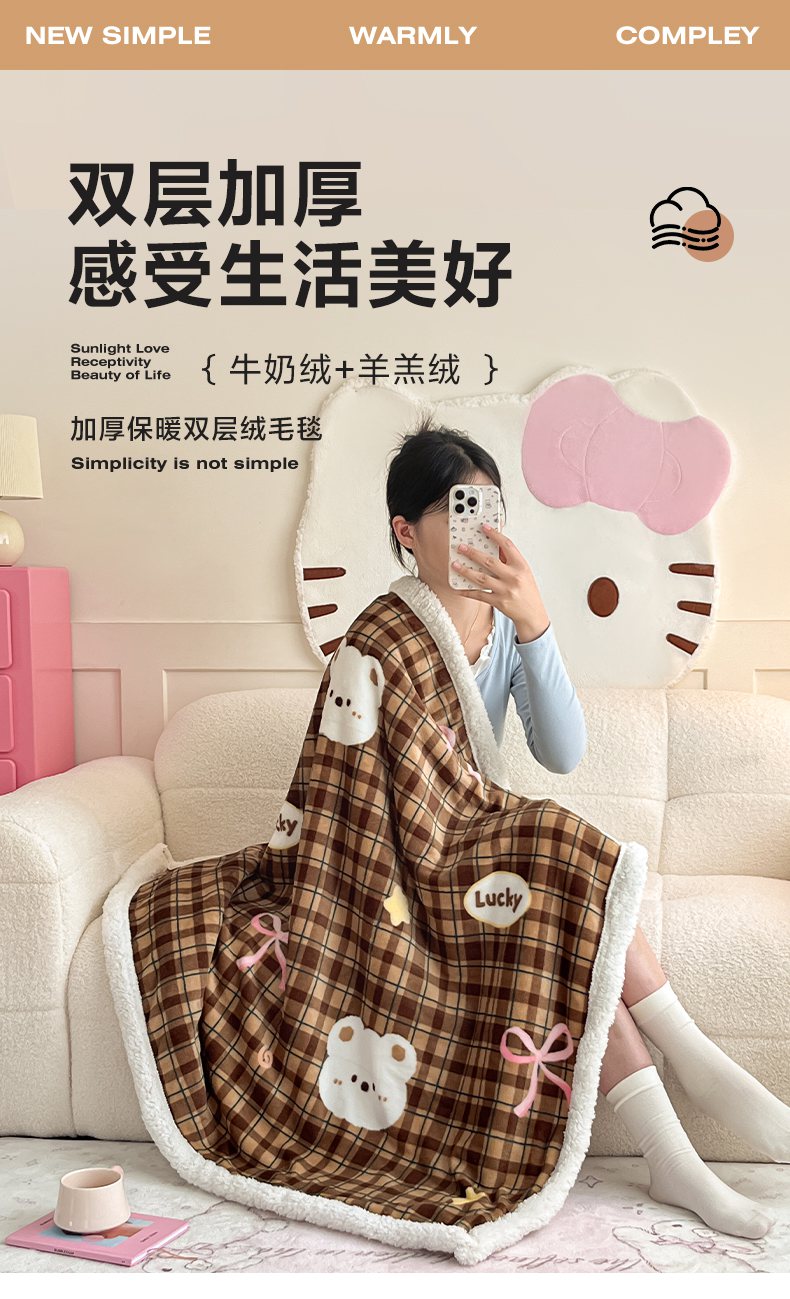 川悦生活 2025新款牛奶绒羊羔绒毯子毛毯 毛毯茶酥小熊