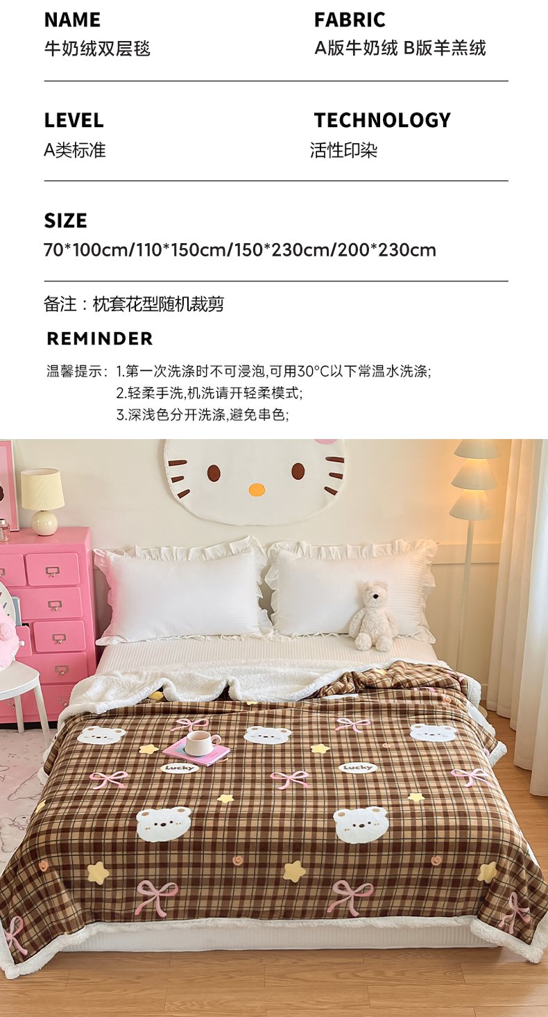 商品名称:川悦生活 2025新款牛奶绒羊羔绒毯子毛毯 毛毯茶酥小熊