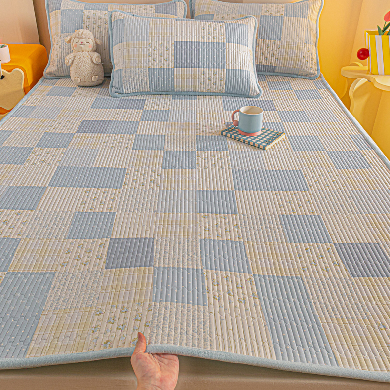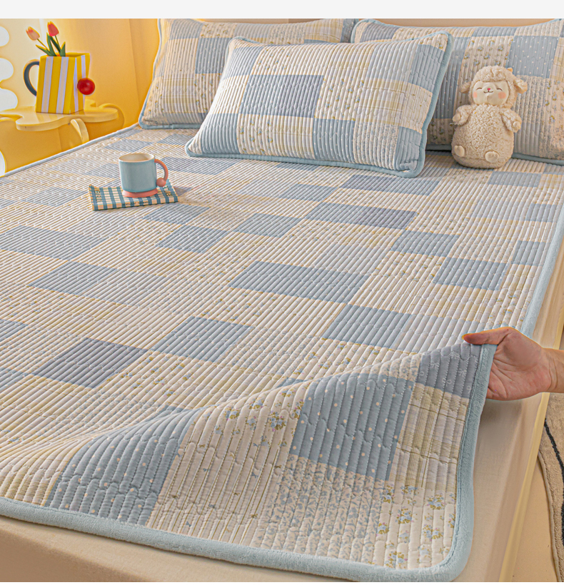 • 91家纺网 家纺一手货源 找家纺 恒尚居 2025新款A版全棉B版牛奶绒夹棉床褥垫A类四季可用学生床垫-秋冬款三件套系列三 芳菲-蓝【A纯棉-B牛奶绒】