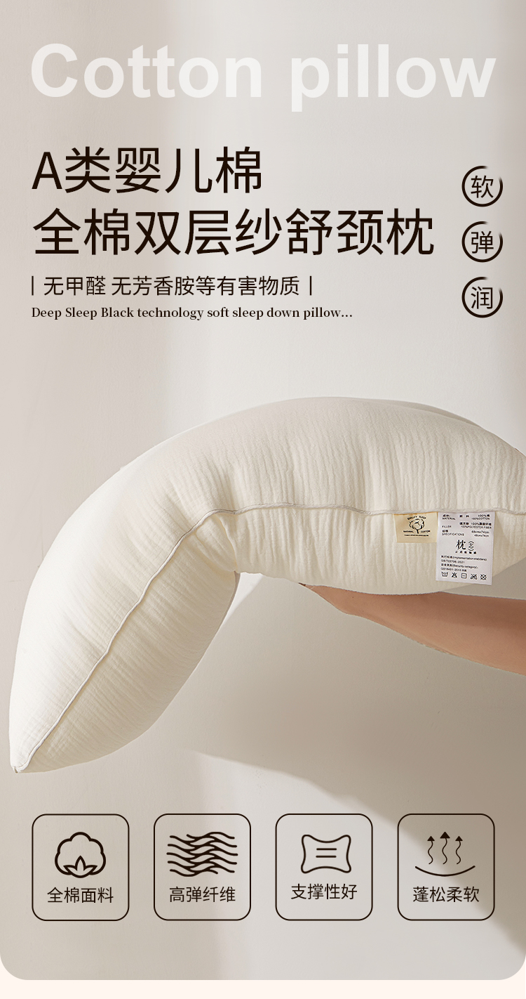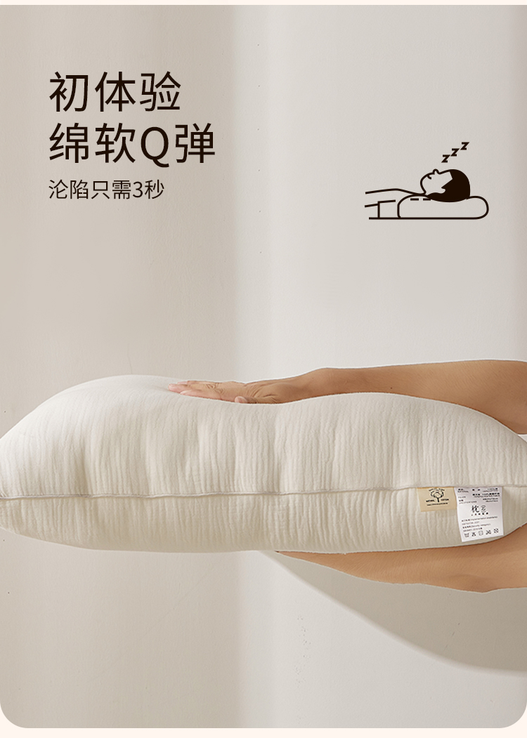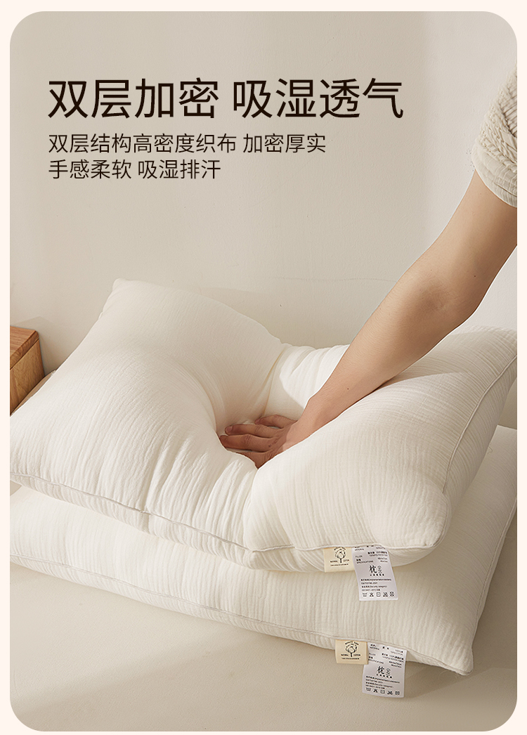 商品名称:(总)铺尚美家纺 2025新款日式 全棉纯棉邹邹双层纱枕芯 柔软透气亲肤枕 A类本色枕头芯 枕头枕芯