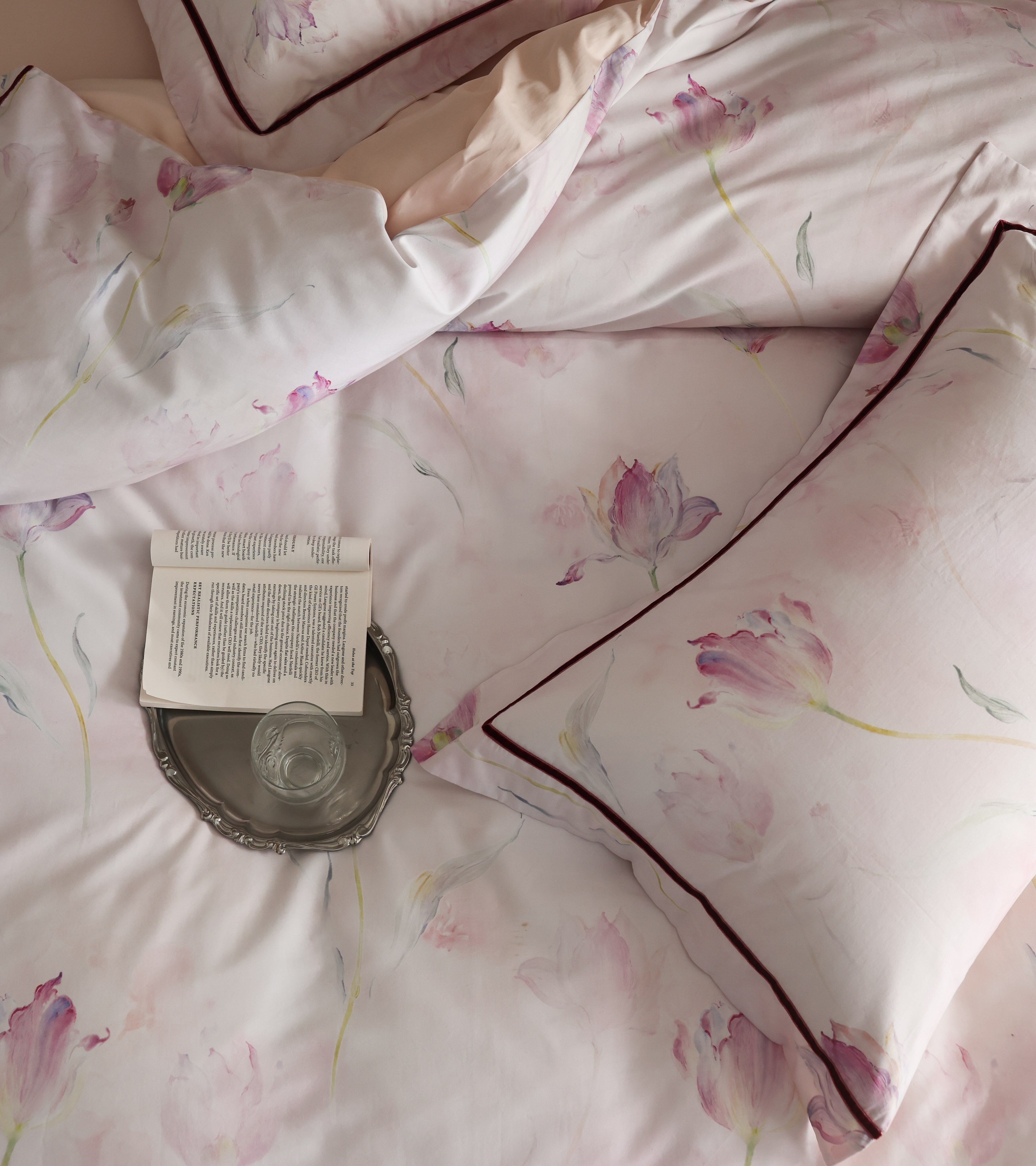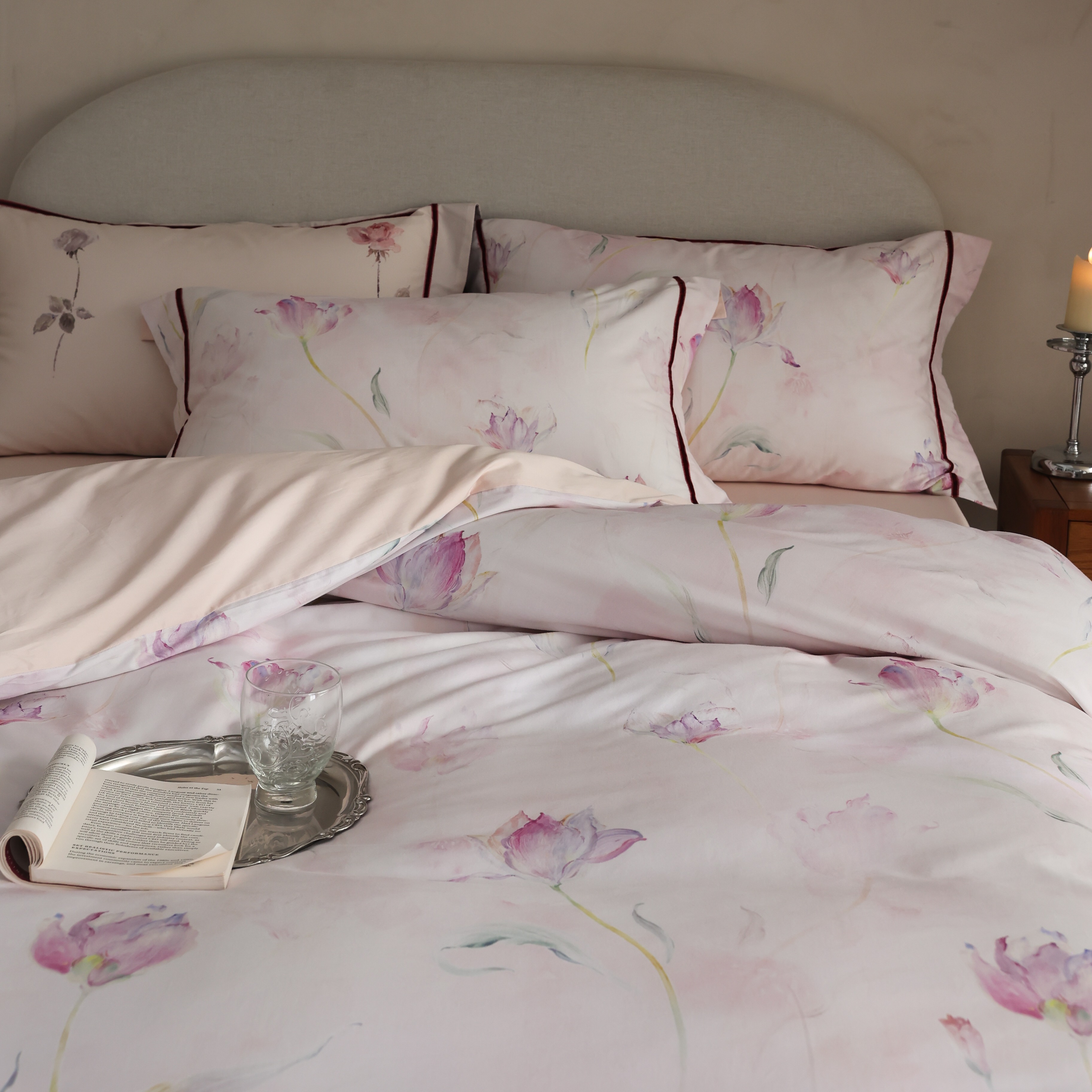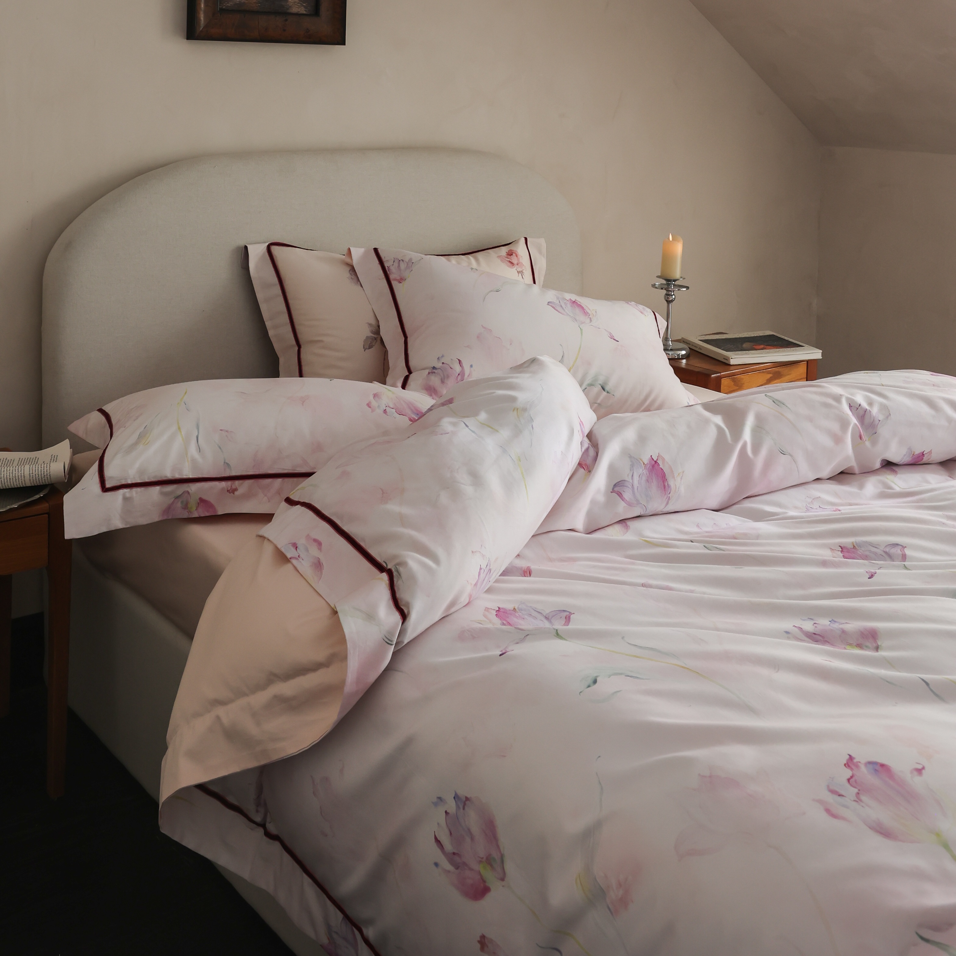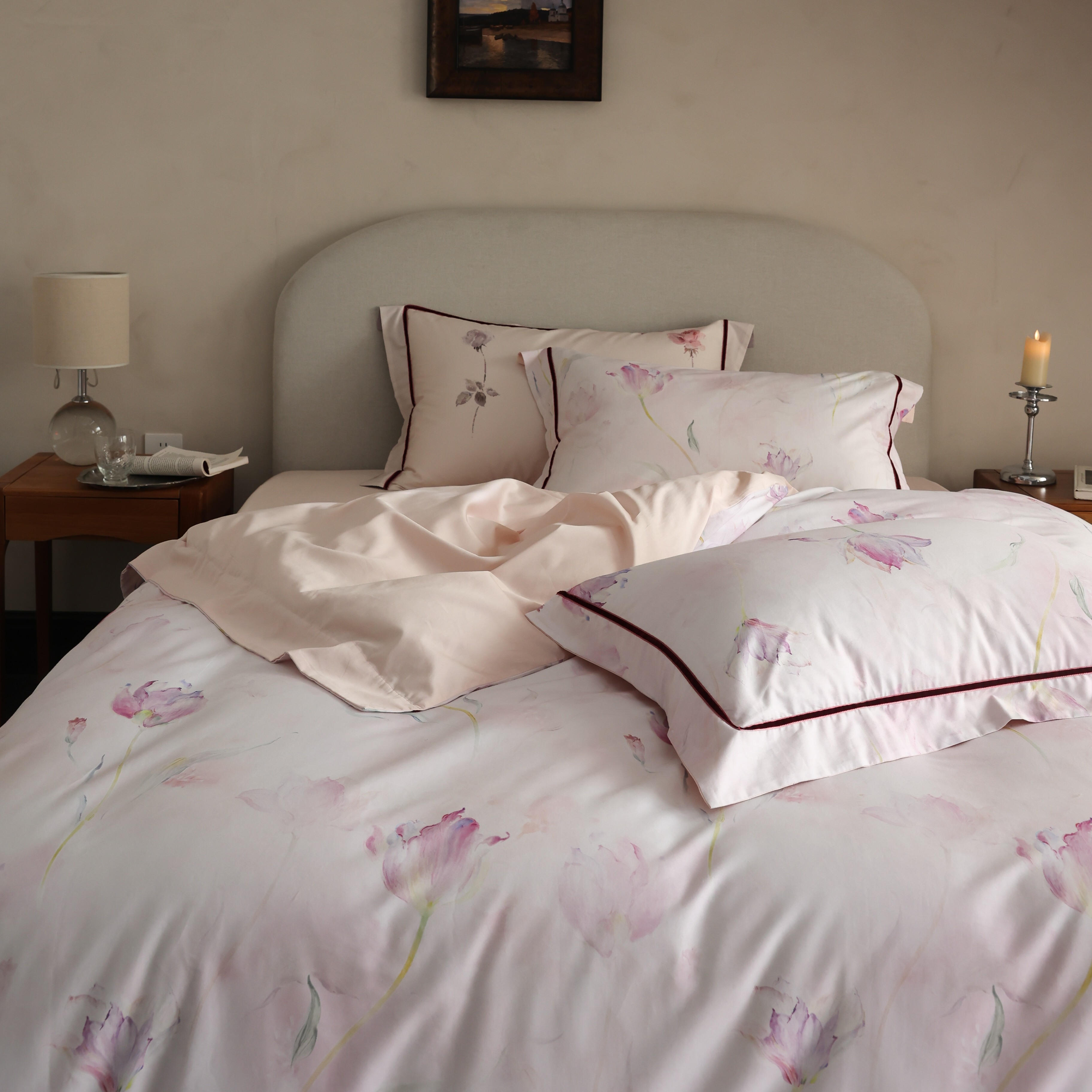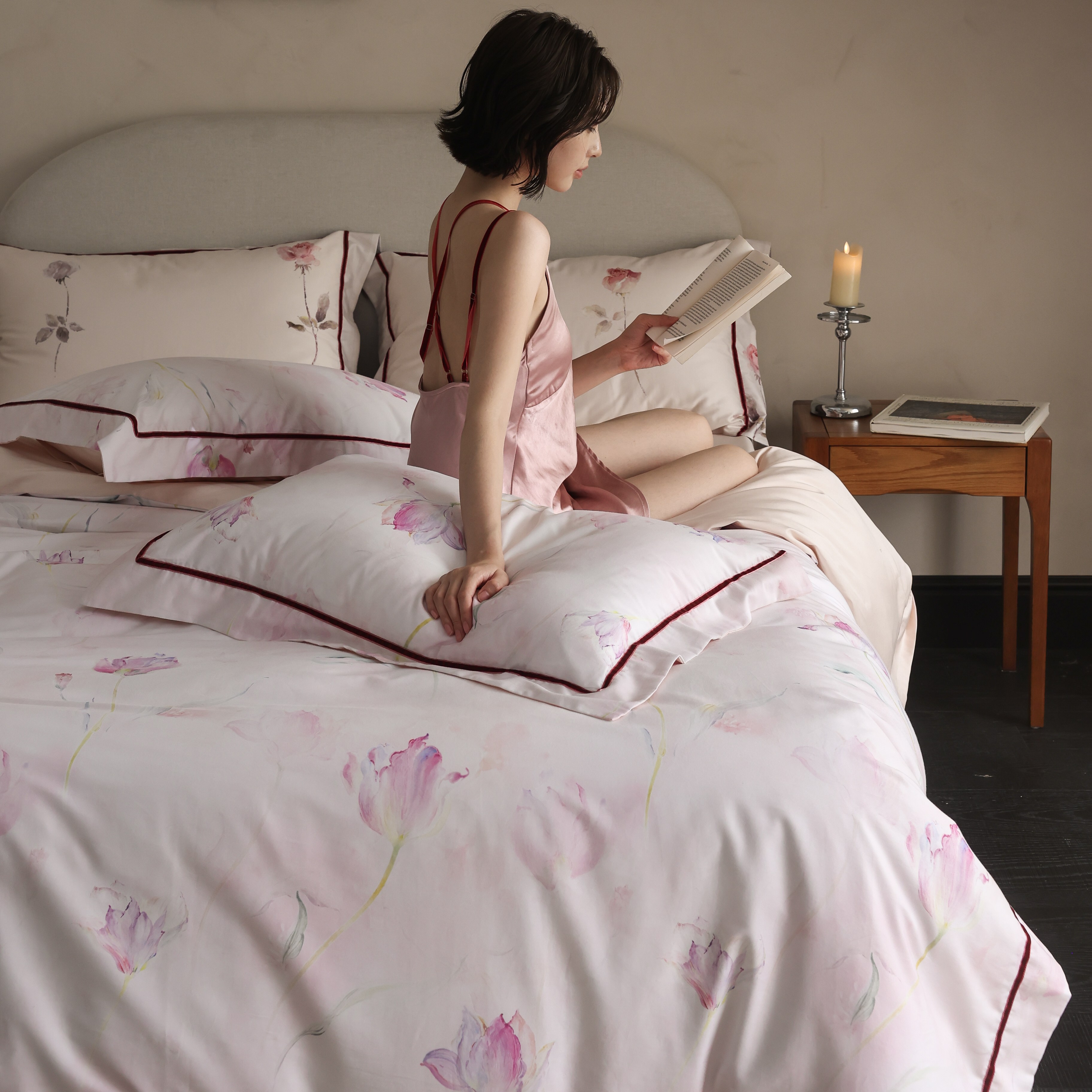 商品名称:初拾 2025新款100s全棉纯棉数码印花复古丝绒织带四件套 生如夏花