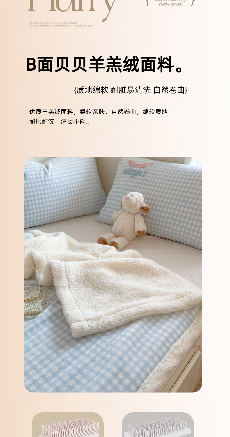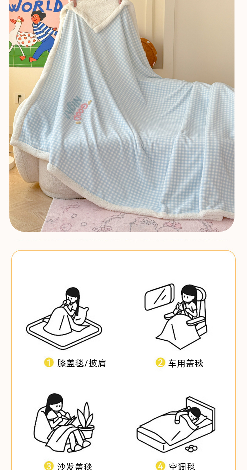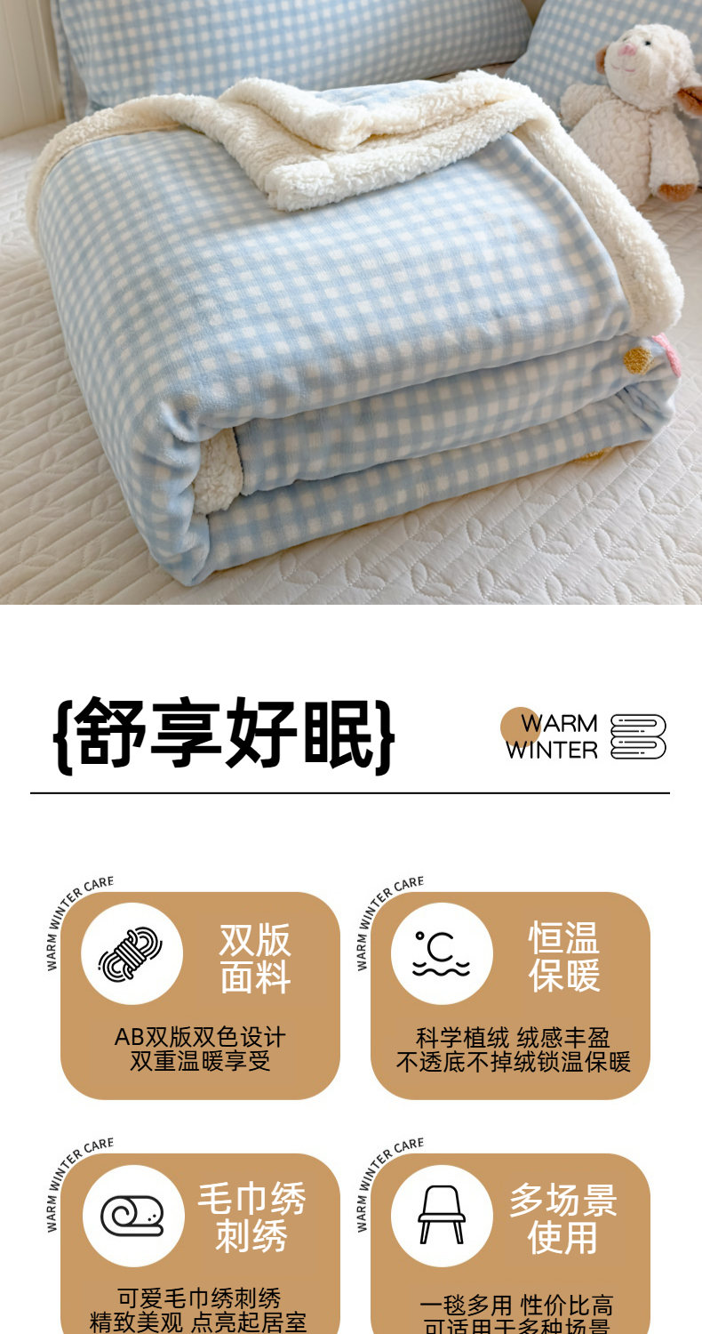 (总)布柔 2025新款原麻皱皱纱羊羔绒双层毛毯多功能盖毯午睡沙发毯子,暗香盖毯,春半盖毯,蓝兔盖毯,晴雪盖毯,秋序盖毯