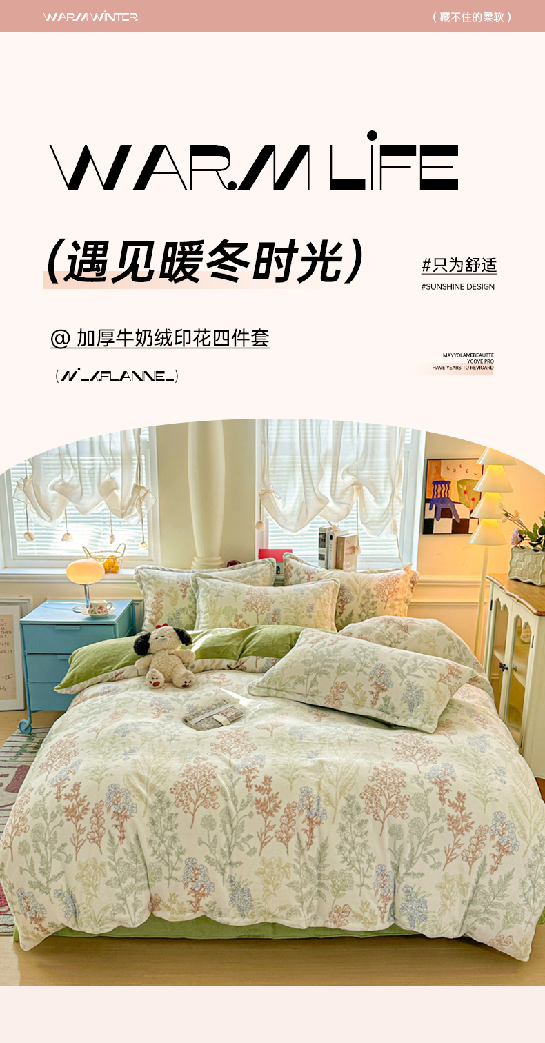 (总)卡普家居 2025新款加厚保暖牛奶绒系列--四件套,童趣时光,蝶舞格韵,粉熊猫,凯蒂乐园,萌萌熊,米兰风尚,森林小兔,幽兰花谷,童话星空,爱意满满,波波熊,波士顿,初夏花开,呆萌狗狗,花涧,花开物语,花漾,幻想,卡布林,快乐布鲁,蓝色梦想,浪漫玫瑰,满心欢喜,萌趣熊宝,慕斯,奶牛杯,欧风花影,千鸟格,秋日细雨,柔伊,甜酷,甜心,小煤球,星光汇,幸运兔,熊猫皮皮,芽蜜,郁金香,紫韵花开
